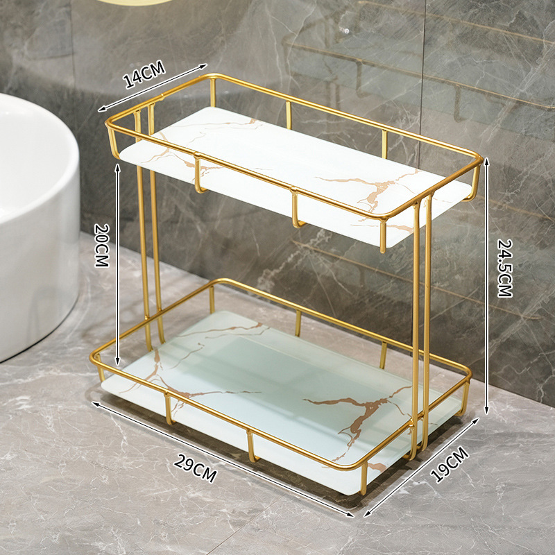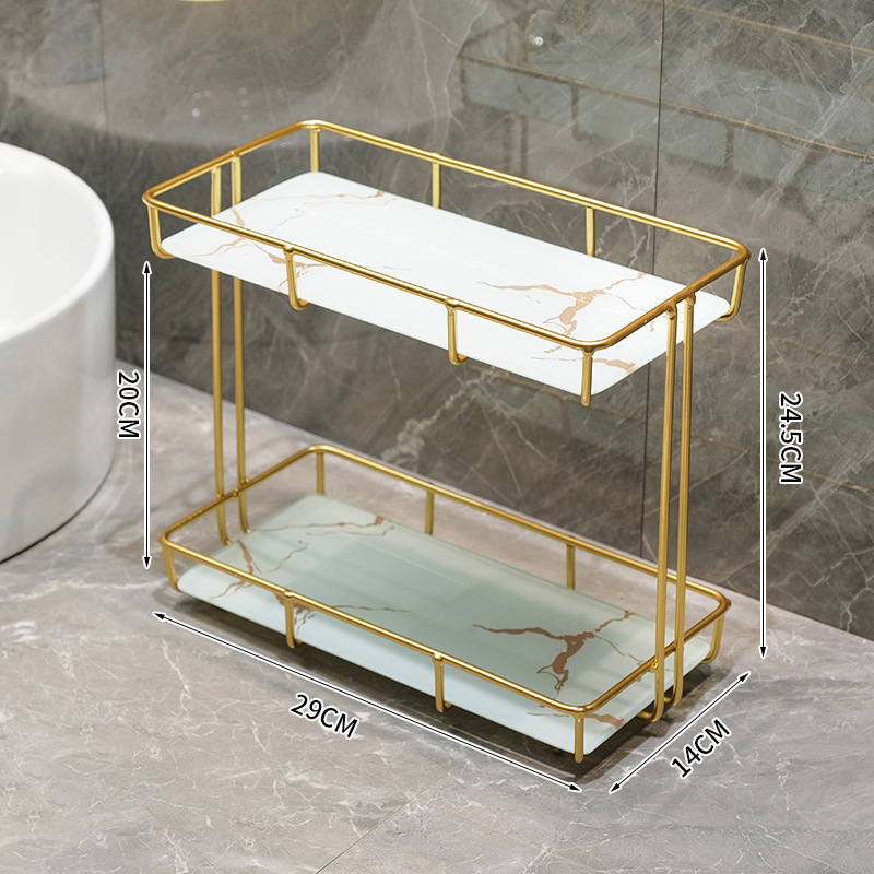 가벼운 럭셔리 세면대 화장품 보관 랙 화장실 욕실 세면대 빛 럭셔리 데스크탑 더블 레이어 스토리지 랙