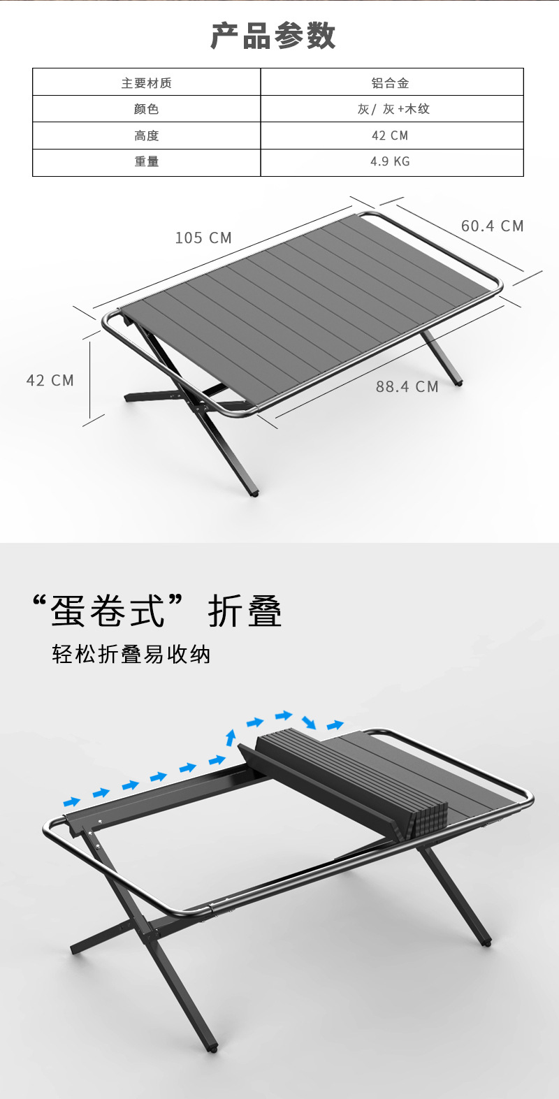 铝合金蛋卷桌椅子露营装备套装野营用品便携式野餐桌户外折叠桌