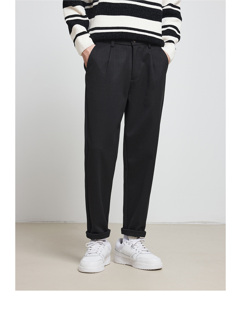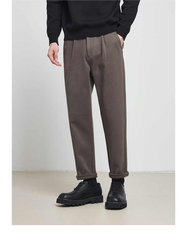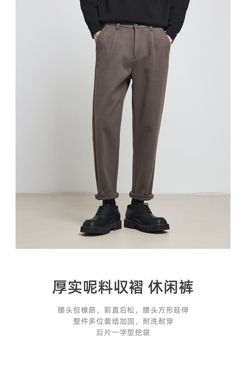 모마이크 라이트 비즈니스 모직 캐주얼 팬츠 남성용 2025 가을 겨울 신상 기본 단색 스트레이트 남성용 긴바지스토어 가기