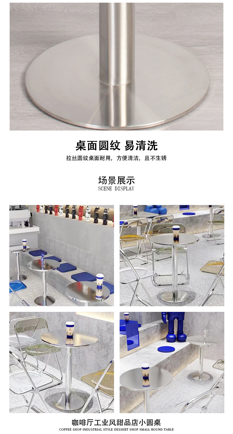 산업 스타일 스테인레스 스틸 원형 테이블 바베큐 가게 함부르크 스낵 우유 차 가게 테이블과 의자 인터넷 연예인 야외 카페 접는 의자