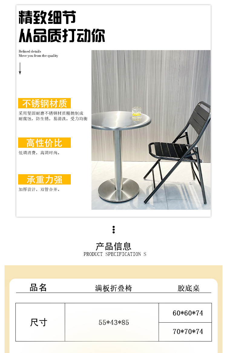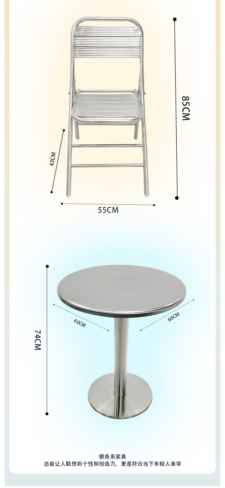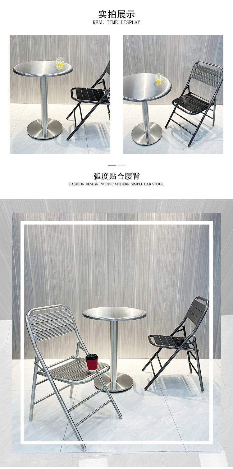 산업 스타일 스테인레스 스틸 원형 테이블 바베큐 가게 함부르크 스낵 우유 차 가게 테이블과 의자 인터넷 연예인 야외 카페 접는 의자스토어 가기