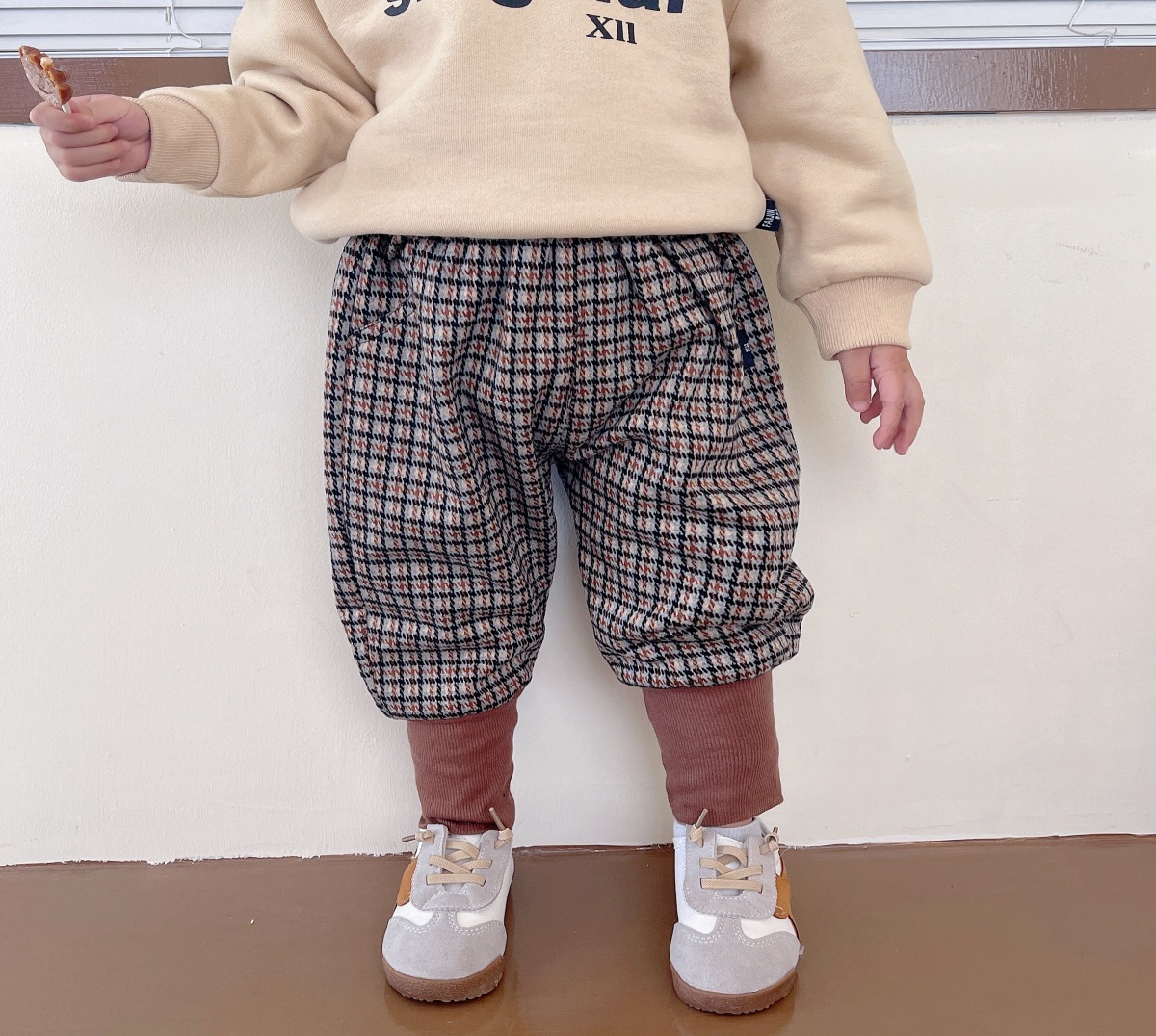 有一丢丢小哈伦感觉的加绒裤子 绿格和咖啡格都是又潮又韩的感觉