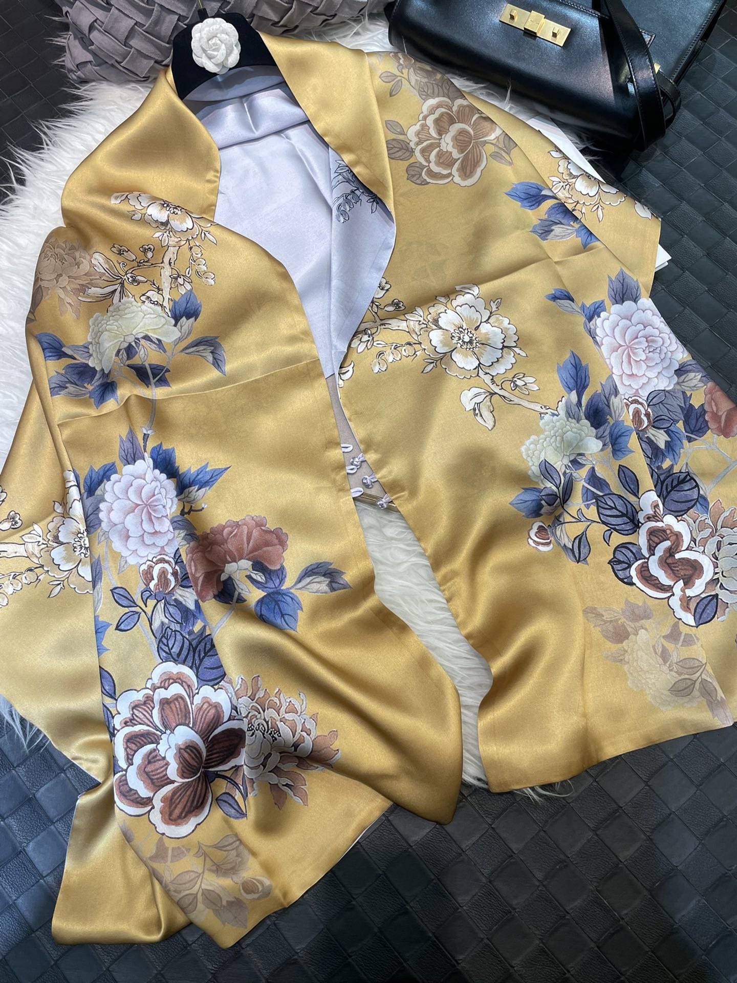 공장 재고 도매 항저우 누에 실크 전국 조수 양면 더블 레이어 목도리 대형 스카프 버클 우아한 외부스토어 가기