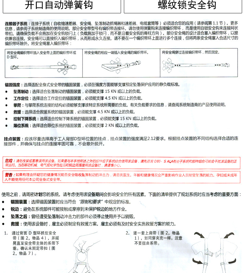 • [5 점식 안전 벨트] [1390370 싱글 후크 쇼크 업소버 로프 2 m 부착]