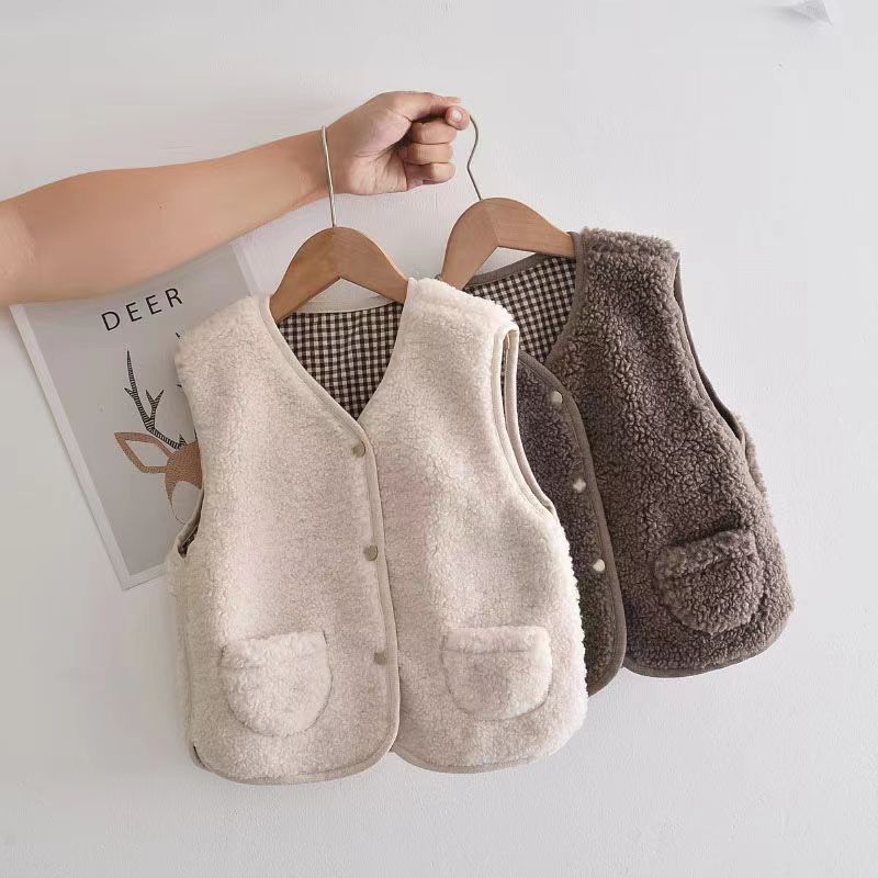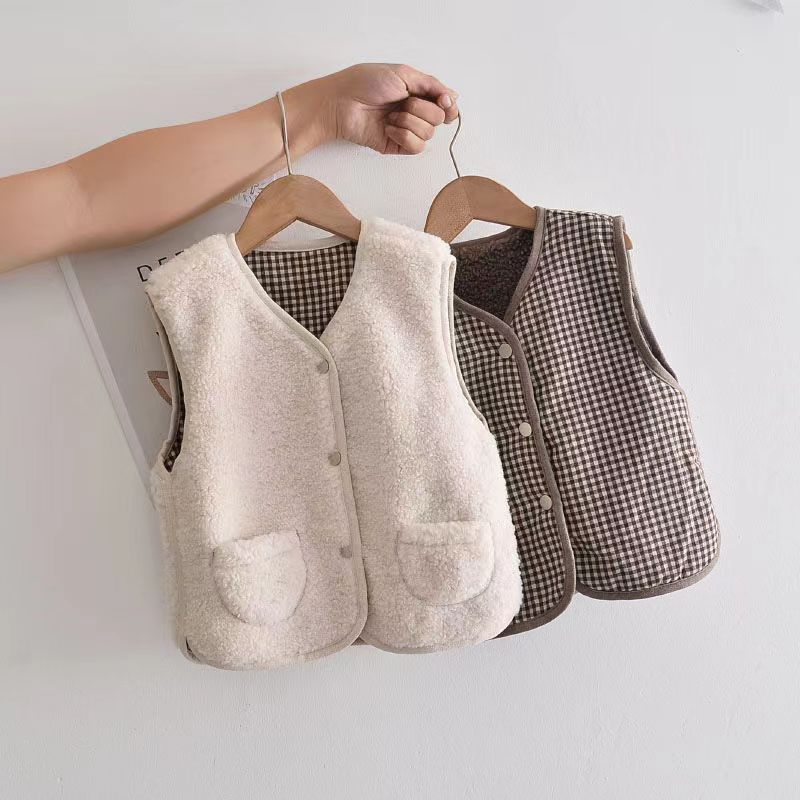 한국어 버전의 새로운 ~ 어린이 조끼 가을과 겨울 격자 무늬 양면 아기 봉제 조끼 부드럽고 따뜻한 패션 잘 생긴