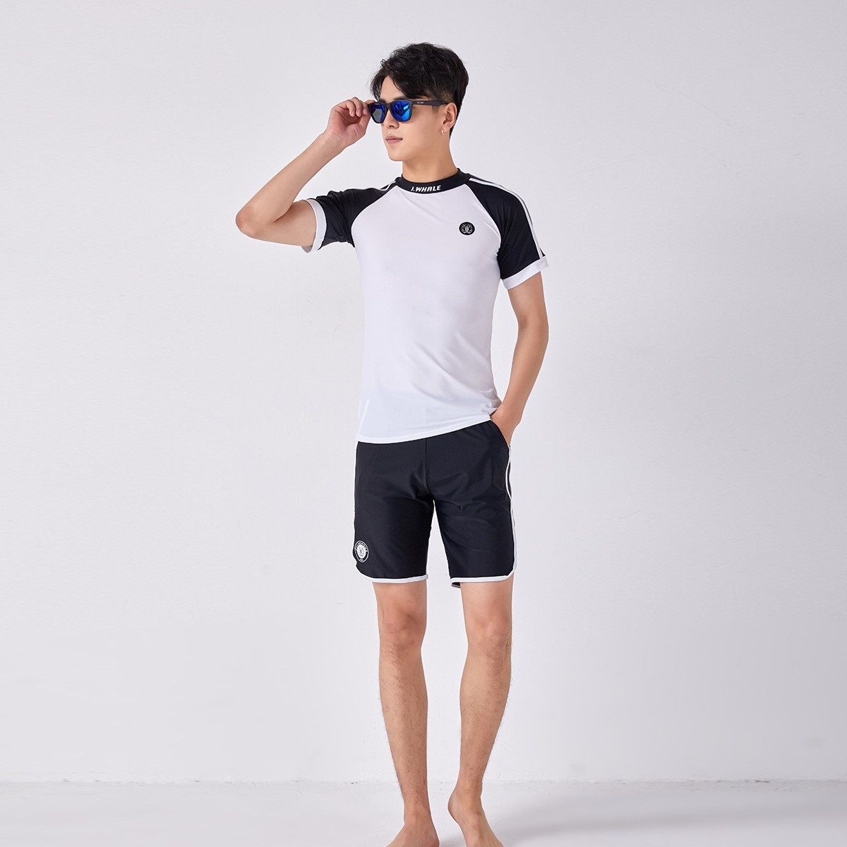 커플 서핑 세트 다이빙 세트 선 스크린 반 소매 권투 선수 바지 남성과 여성 보수적 인 따뜻한 스플릿 커플 수영복 도매스토어 가기