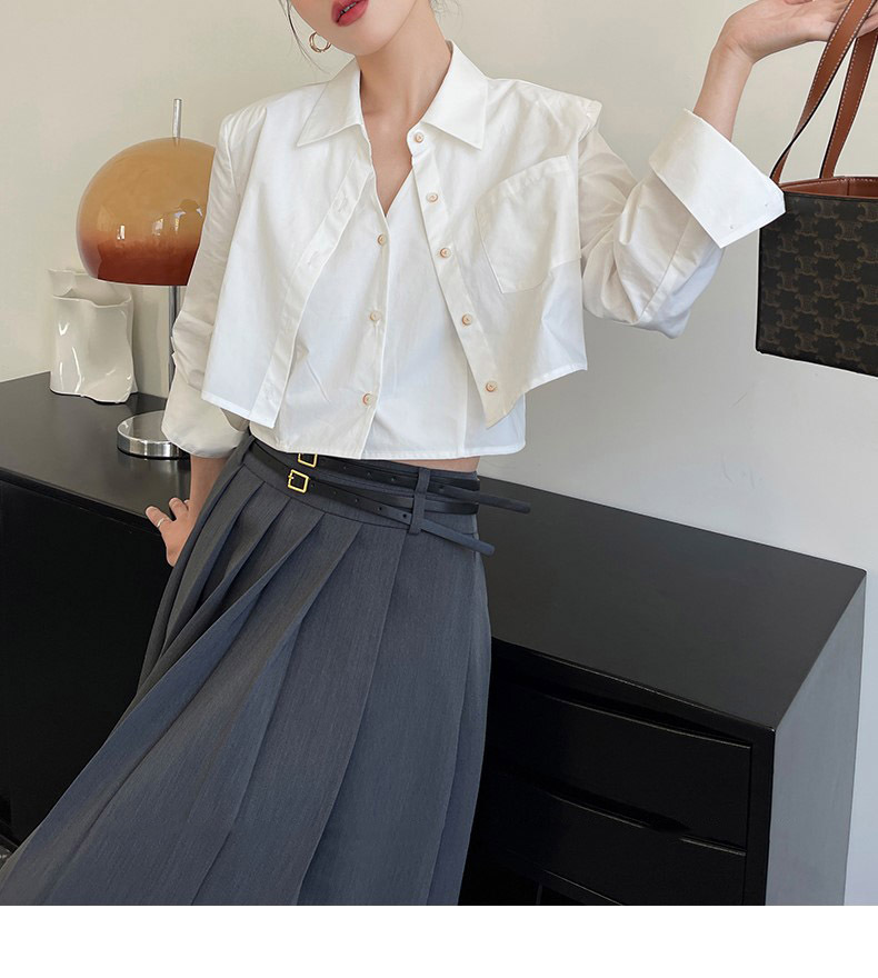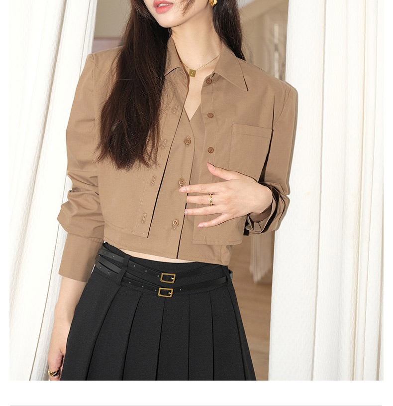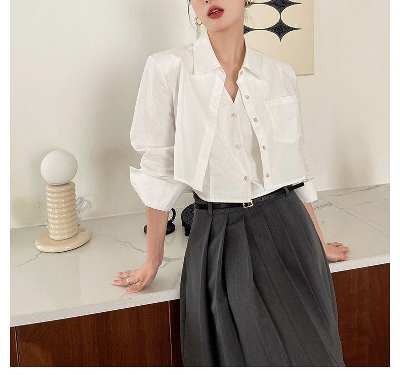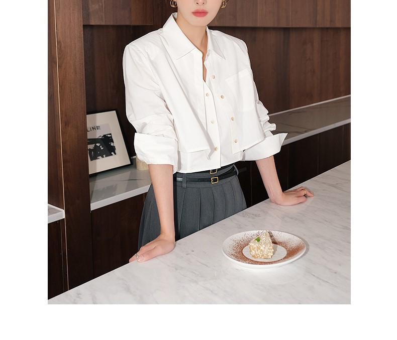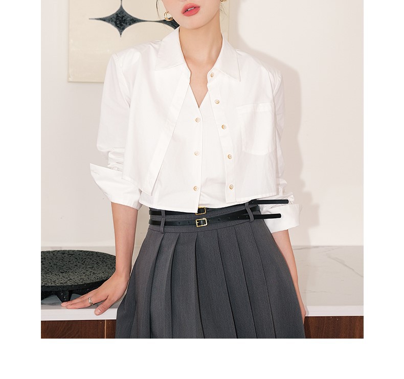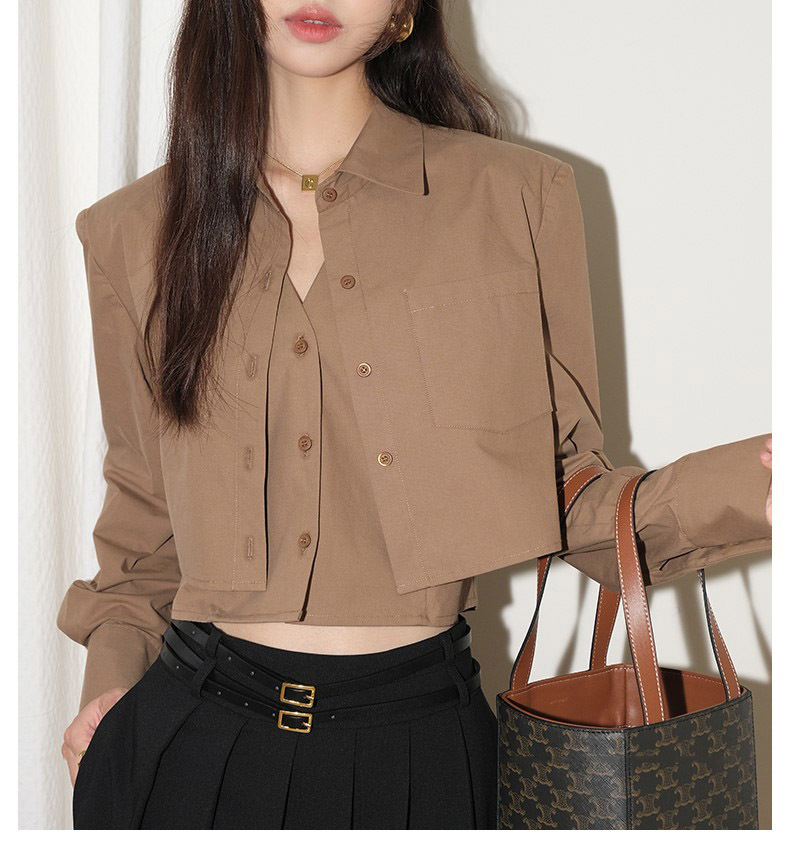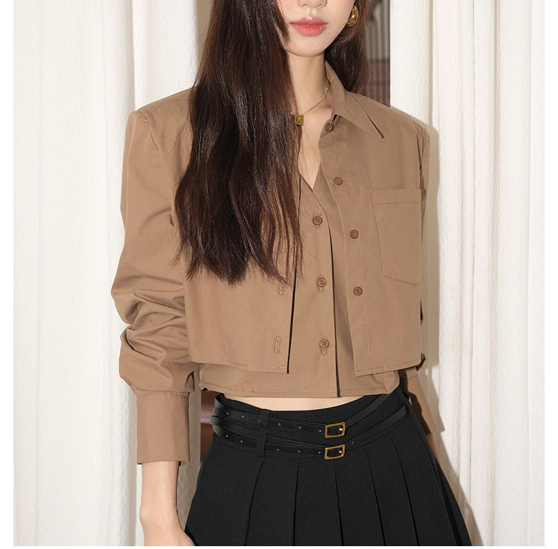 포시즌 웨어러블 화이트 셔츠 여성용 디자인 센스 틈새 쇼트 한국식 통근셔츠 캐주얼 긴팔 가짜 투피스 탑