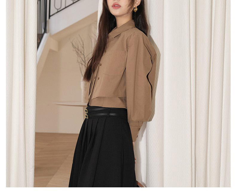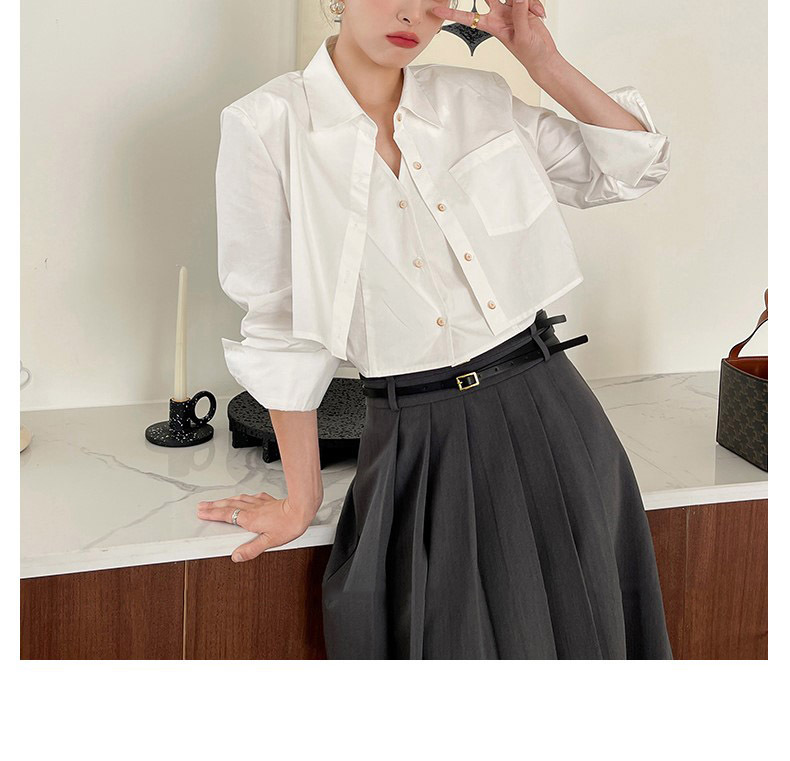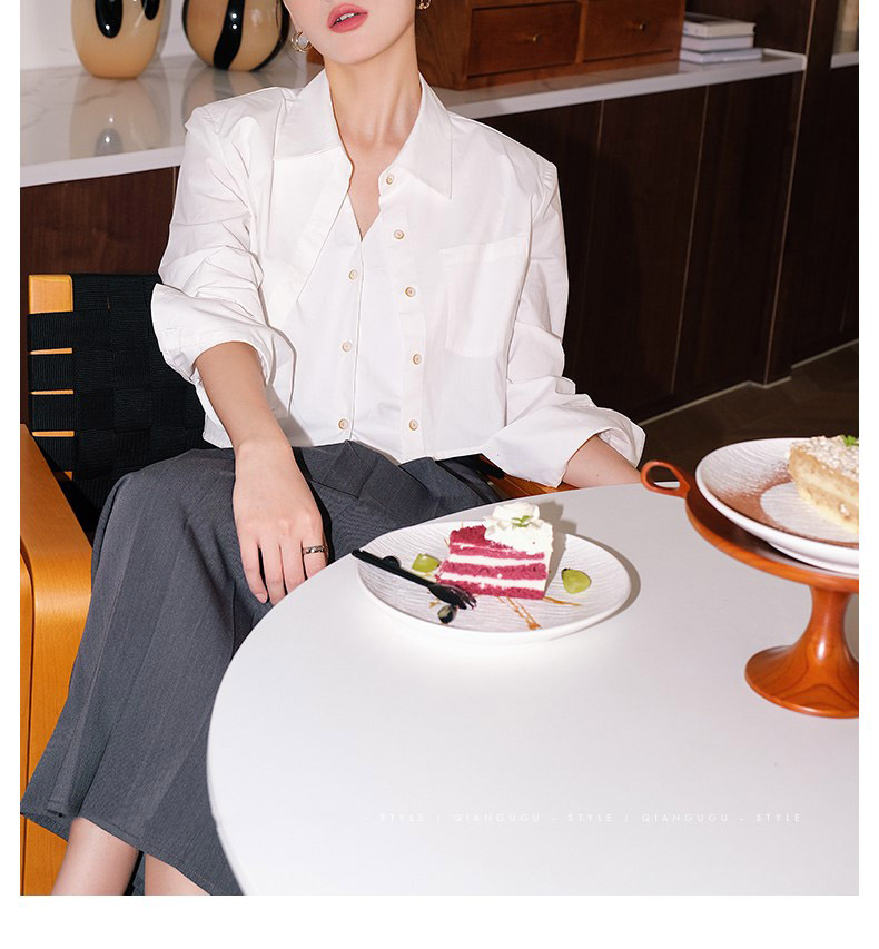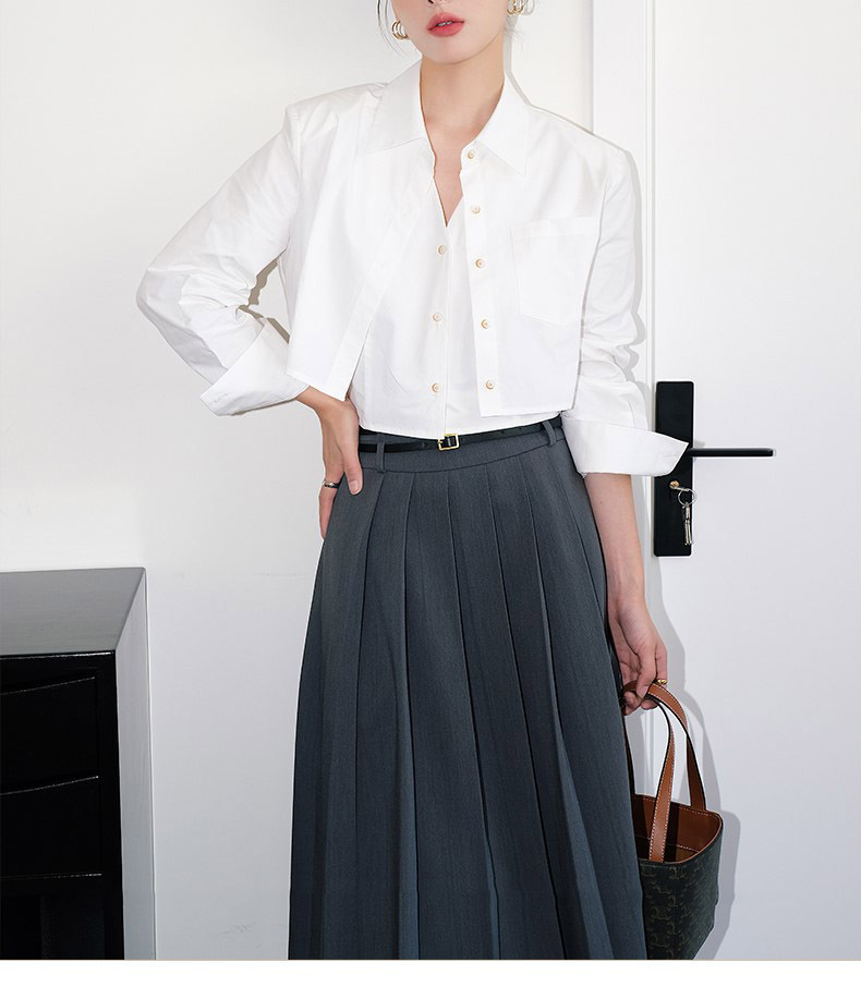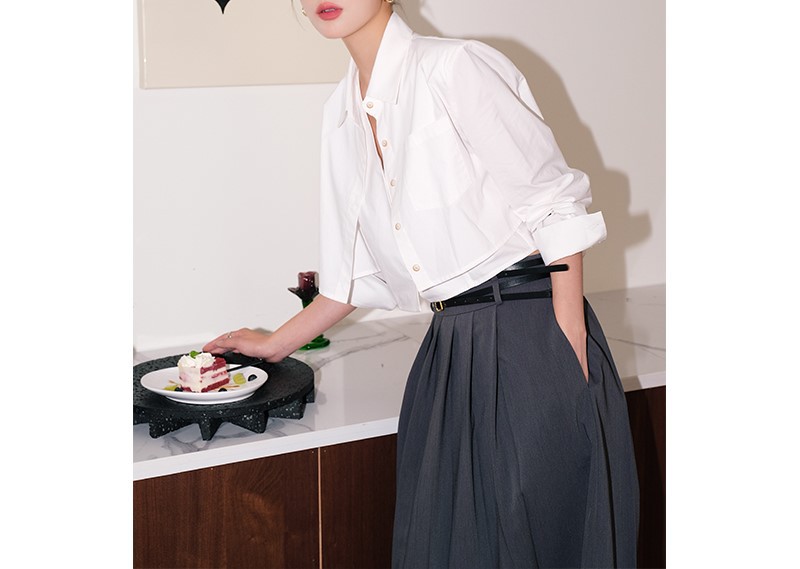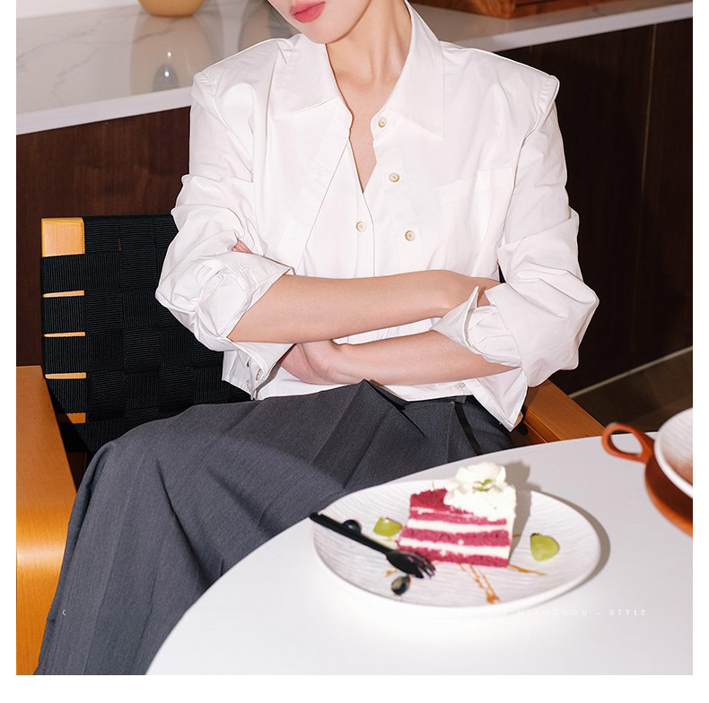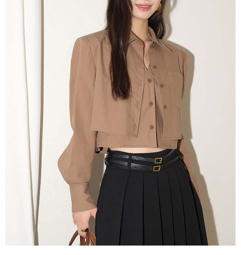 포시즌 웨어러블 화이트 셔츠 여성용 디자인 센스 틈새 쇼트 한국식 통근셔츠 캐주얼 긴팔 가짜 투피스 탑