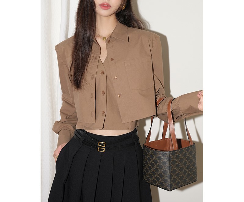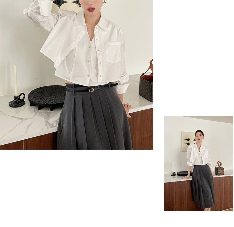 포시즌 웨어러블 화이트 셔츠 여성용 디자인 센스 틈새 쇼트 한국식 통근셔츠 캐주얼 긴팔 가짜 투피스 탑스토어 가기