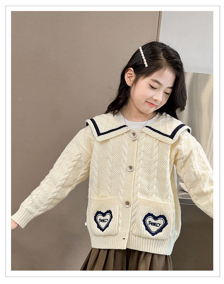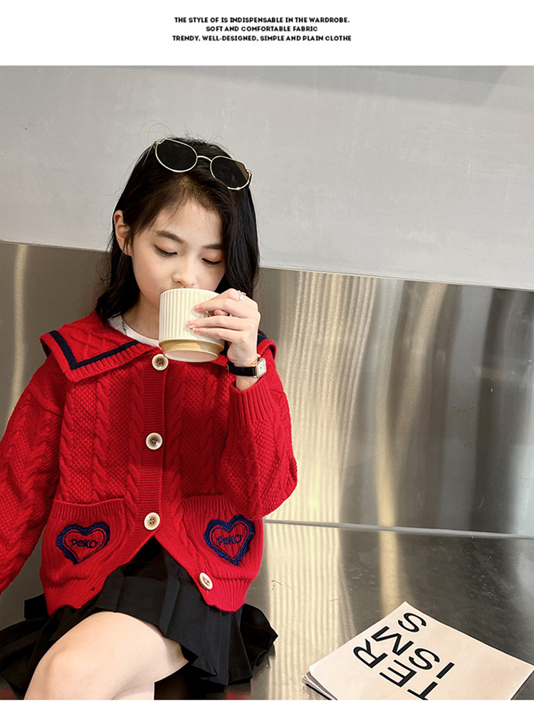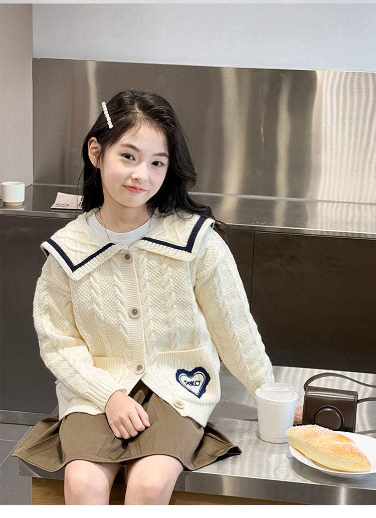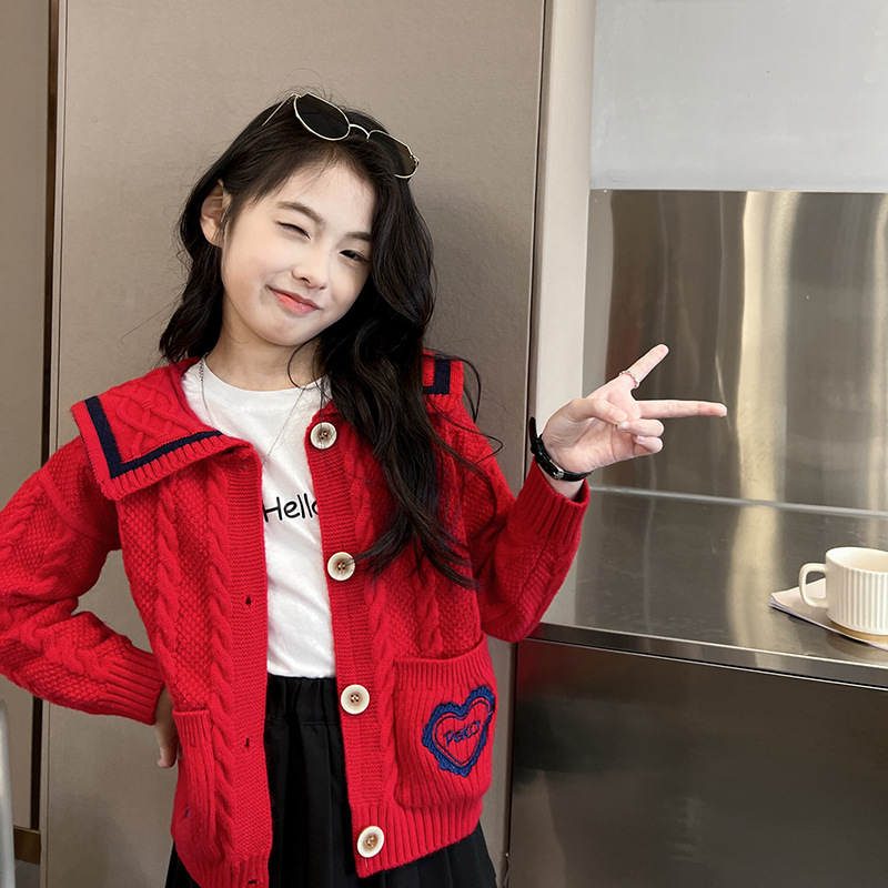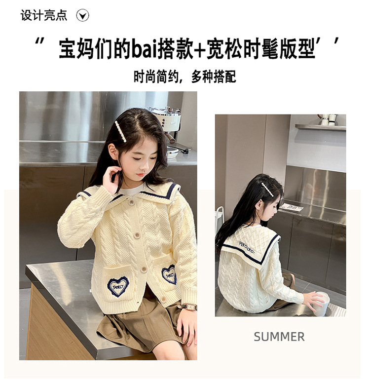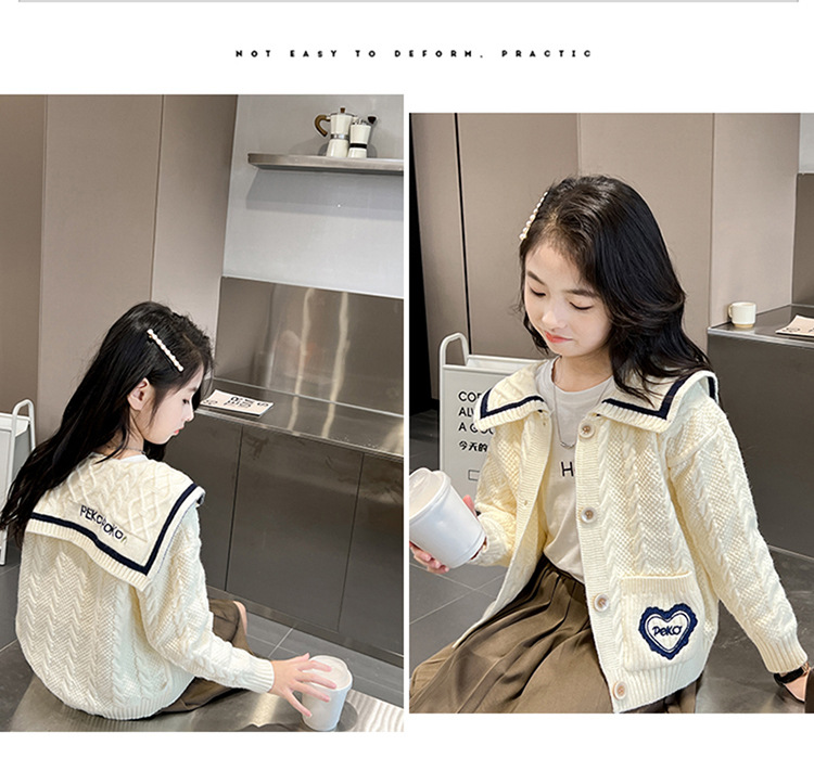 여아 스웨터 대학 스타일 가디건 2023 새로운 한국 스타일 서양 스타일 코트 어린이 니트 셔츠 봄과 가을 여아 탑스토어 가기