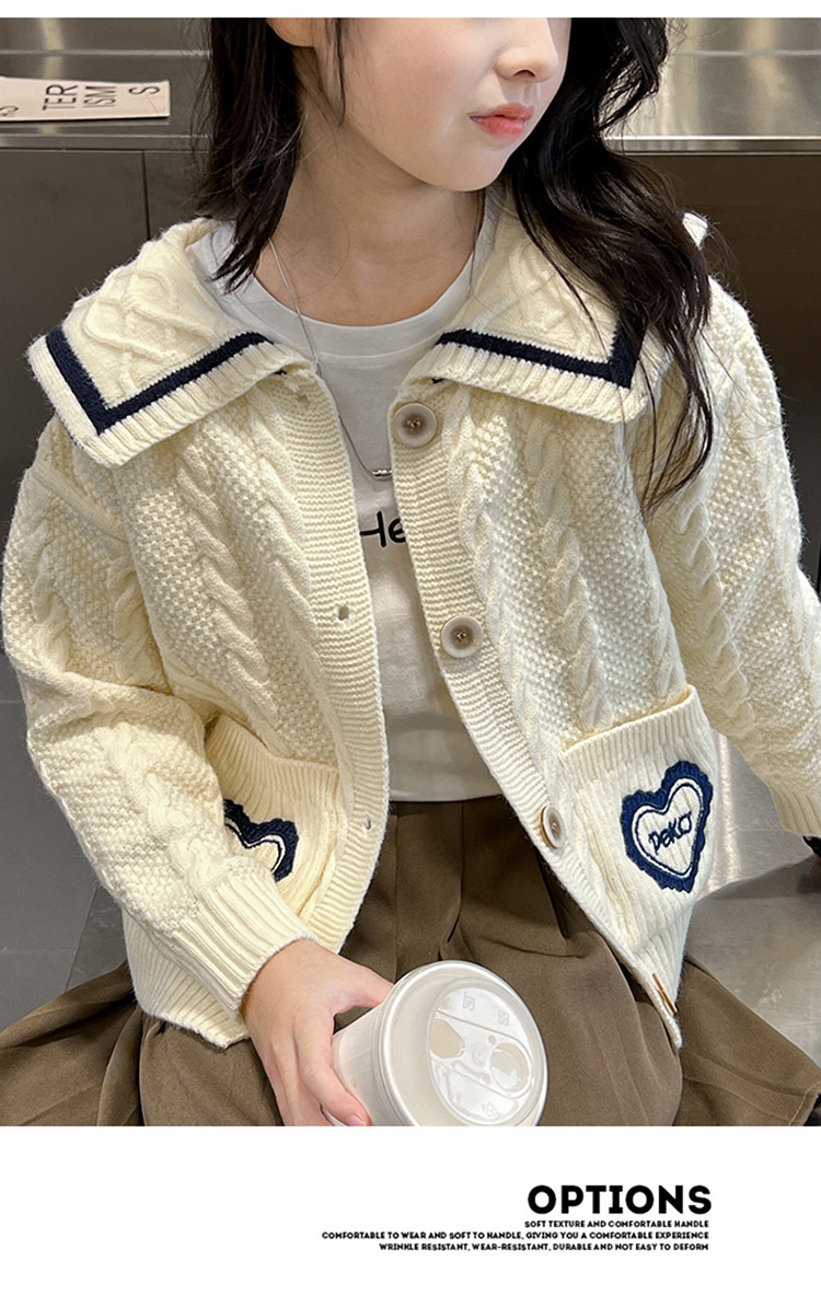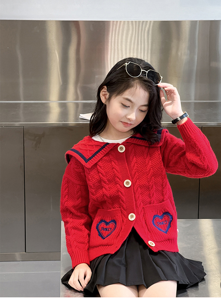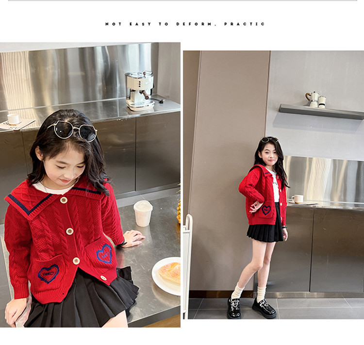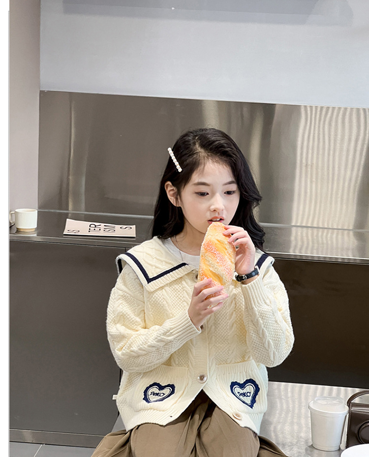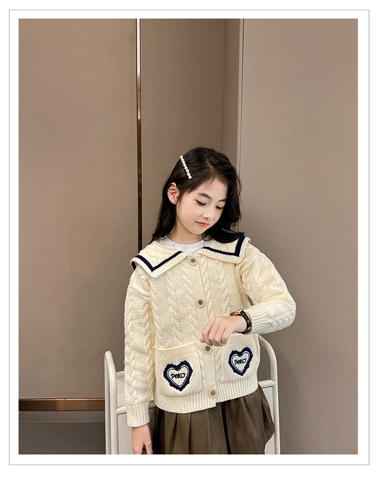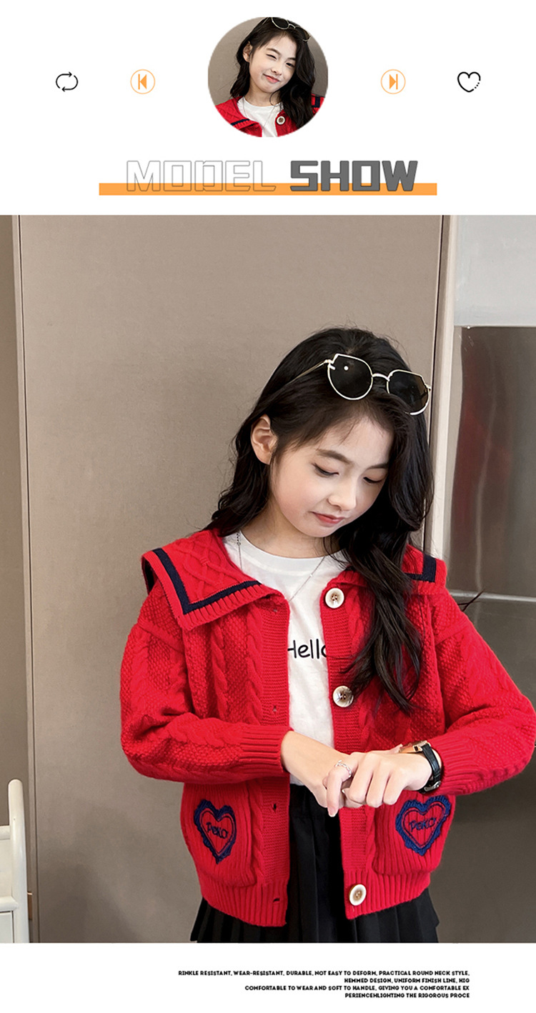 여아 스웨터 대학 스타일 가디건 2023 새로운 한국 스타일 서양 스타일 코트 어린이 니트 셔츠 봄과 가을 여아 탑스토어 가기
