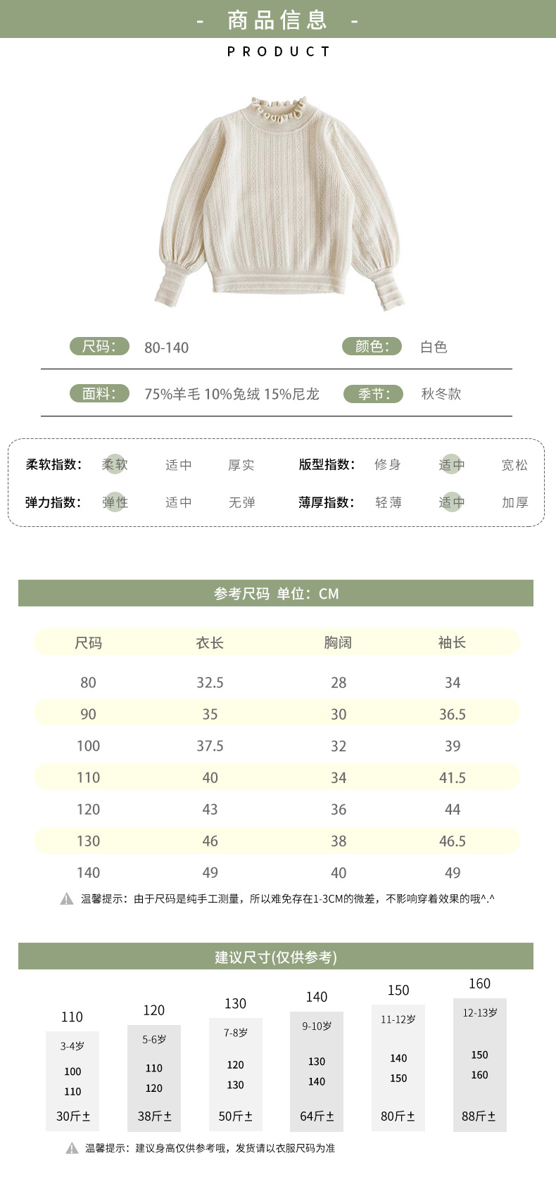 여아 스웨터 가을과 겨울 반 터틀넥 울 니트 스웨터 머플 탑 퍼프 슬리브 스위트 자카드 베이스 셔츠스토어 가기