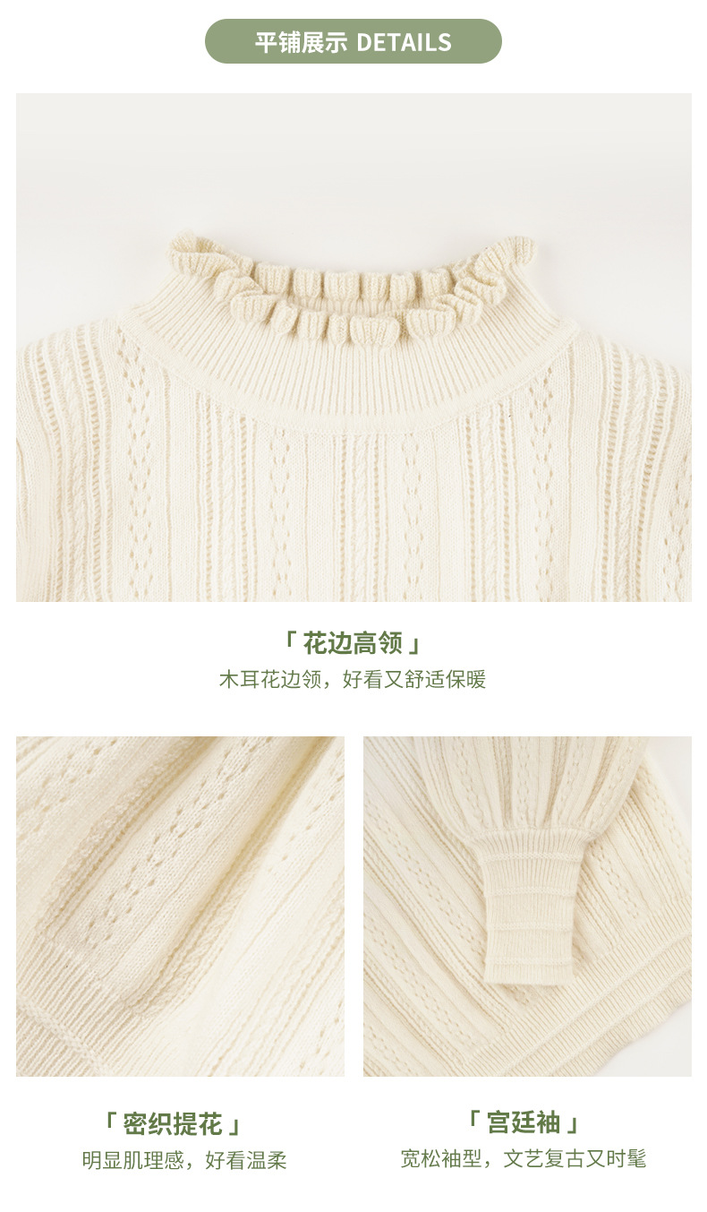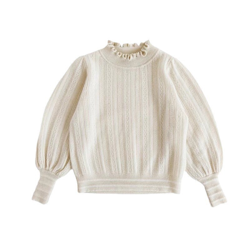 여아 스웨터 가을과 겨울 반 터틀넥 울 니트 스웨터 머플 탑 퍼프 슬리브 스위트 자카드 베이스 셔츠