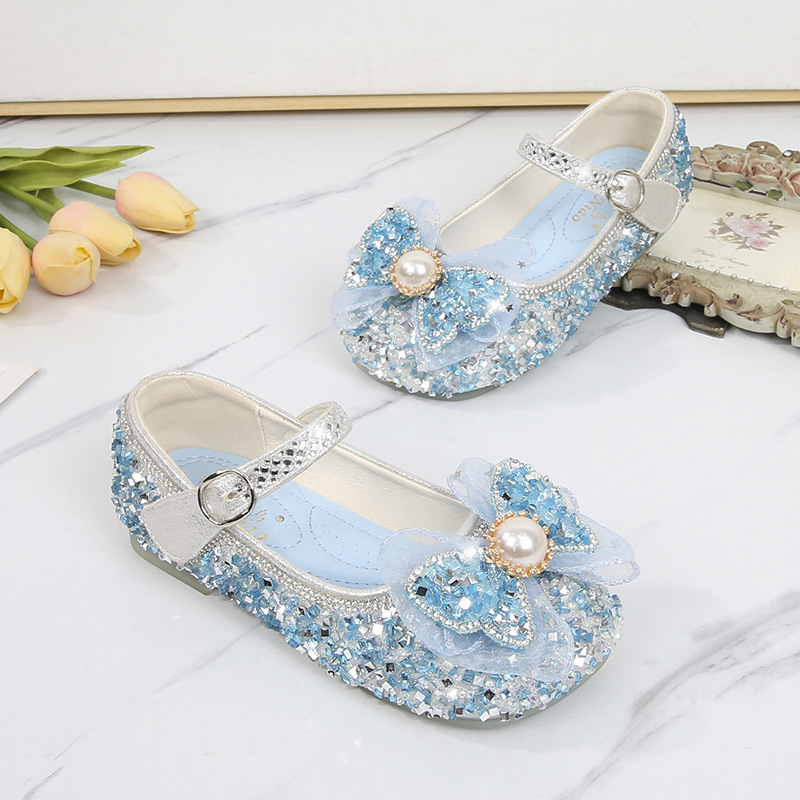 어린이 공주 크리스탈 가죽 신발 소녀 2023 봄 새로운 편안한 플랫 엘사 어린 소녀 꽃 신발스토어 가기