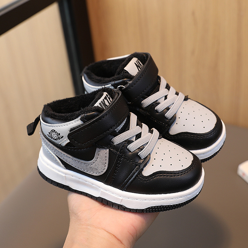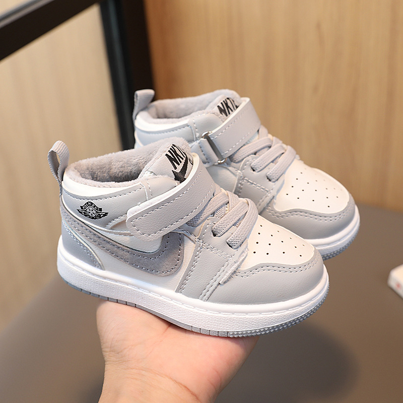 어린이 운동화 소년 소녀 중간 도움말 섀도우 그레이 보드 신발 겨울 두 면 신발 남성과 여성의 아기 신발 부드러운 단독 유아 신발