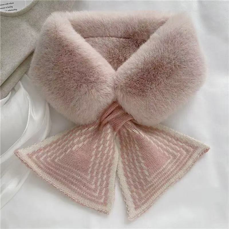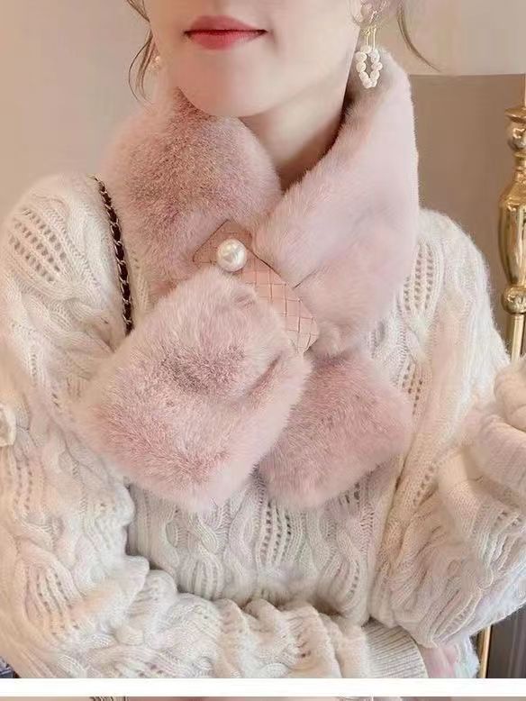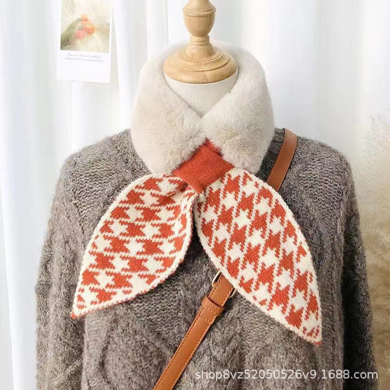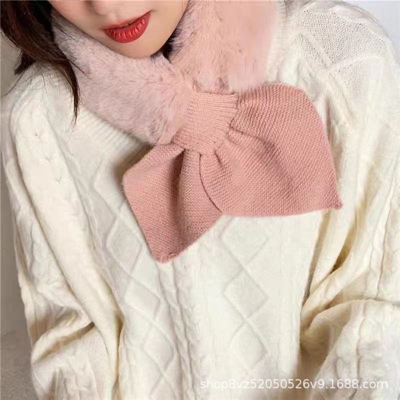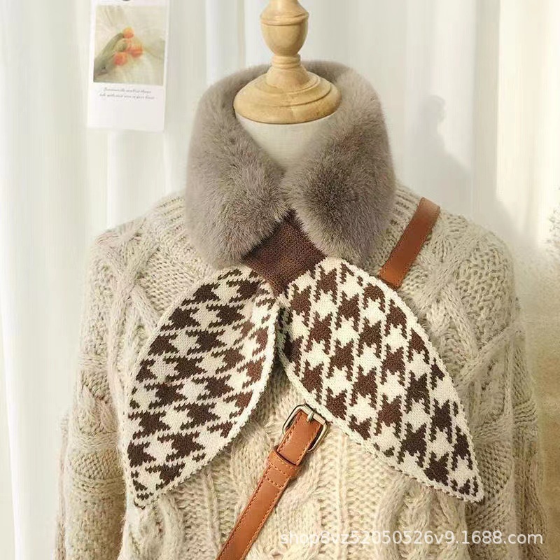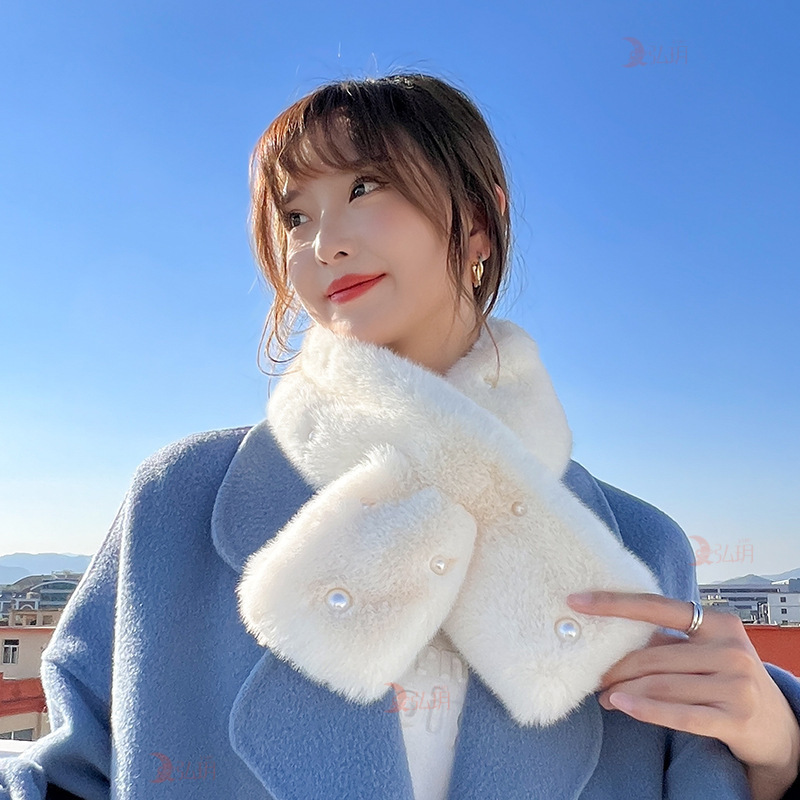 스카프 여성의 가을과 겨울 한국 스타일 트렌디 한 따뜻한 모든 경기 목 보호 목 소매 겨울 모조 렉스 토끼 봉제 크로스 웨이브 도트 스카프스토어 가기