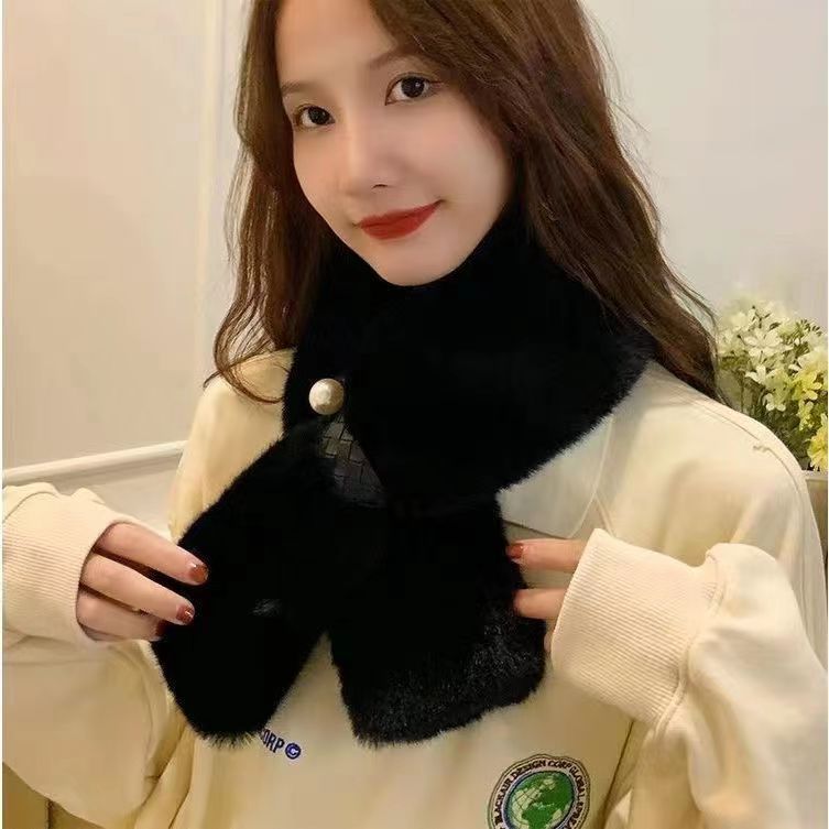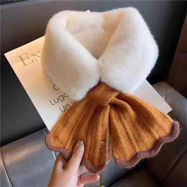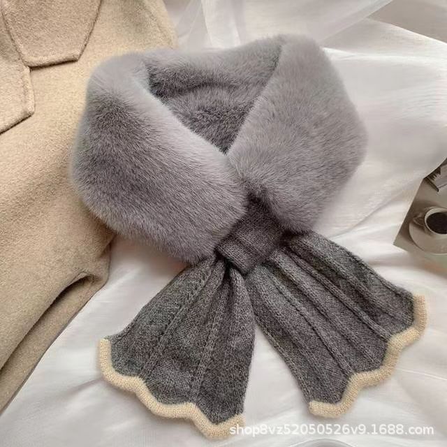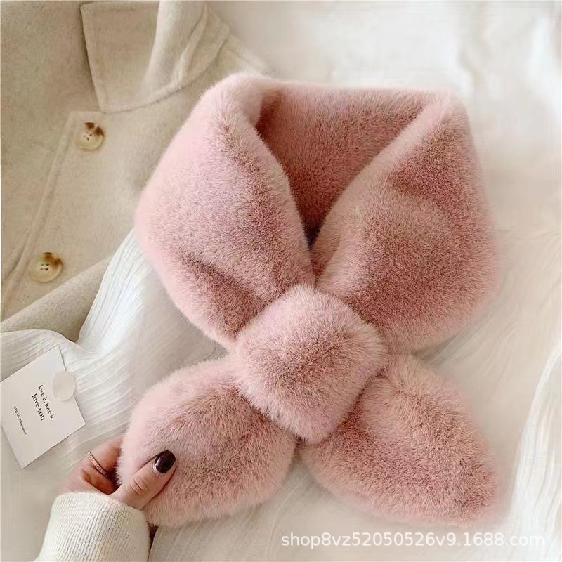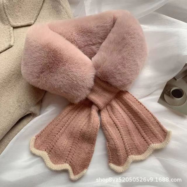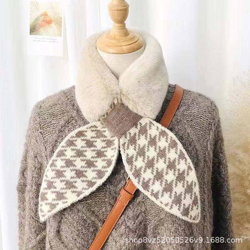 스카프 여성의 가을과 겨울 한국 스타일 트렌디 한 따뜻한 모든 경기 목 보호 목 소매 겨울 모조 렉스 토끼 봉제 크로스 웨이브 도트 스카프스토어 가기