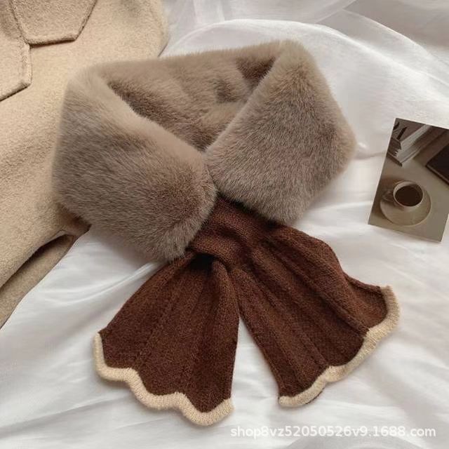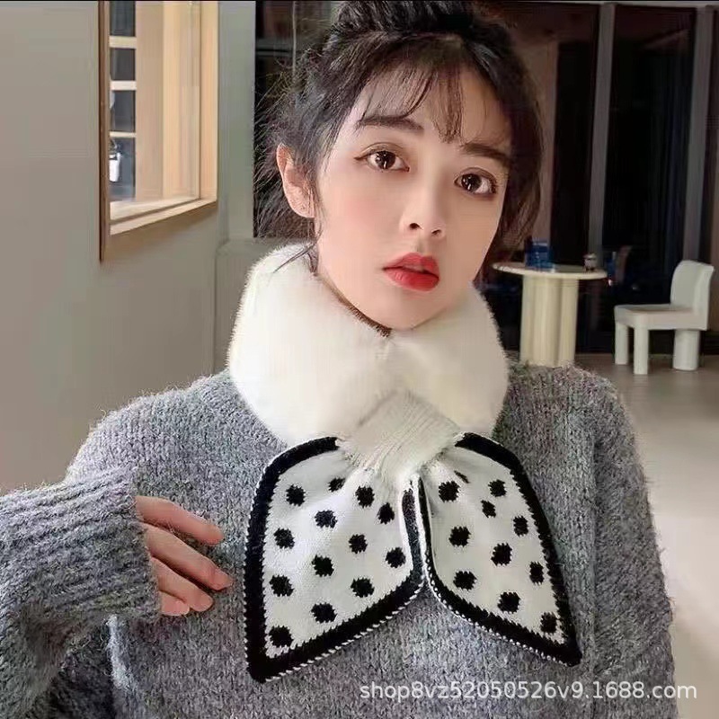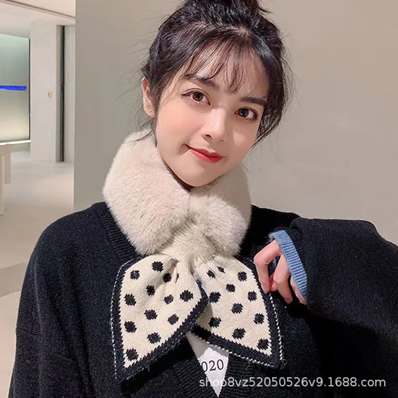 스카프 여성의 가을과 겨울 한국 스타일 트렌디 한 따뜻한 모든 경기 목 보호 목 소매 겨울 모조 렉스 토끼 봉제 크로스 웨이브 도트 스카프