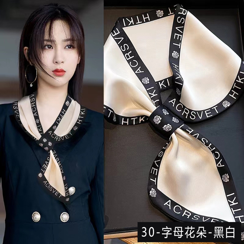 봄과 가을 새로운 실크 스카프 패션 모든 매치 간단한 한국 스타일 귀 스카프 화이트 칼라 스튜어디스 우아한 스카프 스카프스토어 가기