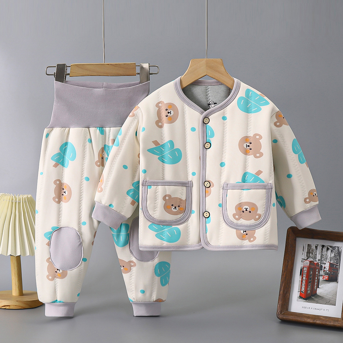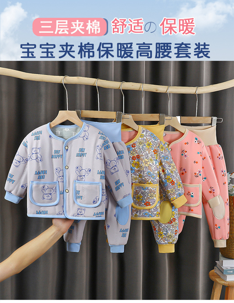 아기의 높은 허리 배 따뜻한 속옷 세트 아기의 가을과 겨울 면 옷 두꺼운 아기의 면 따뜻한 옷스토어 가기