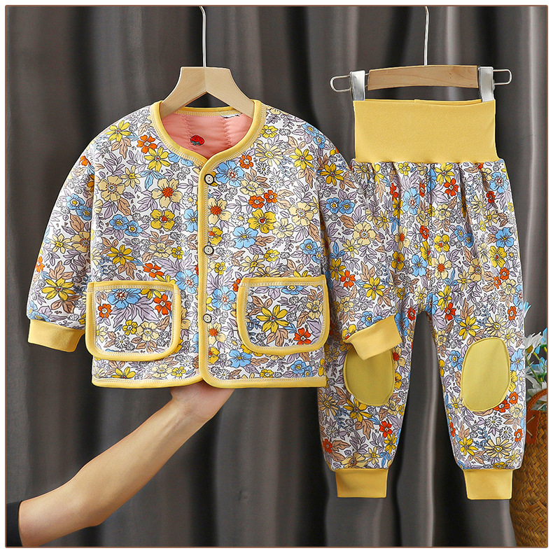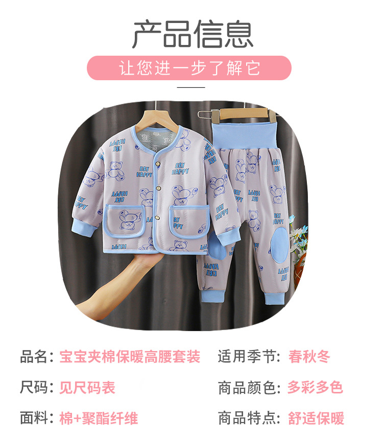 아기의 높은 허리 배 따뜻한 속옷 세트 아기의 가을과 겨울 면 옷 두꺼운 아기의 면 따뜻한 옷