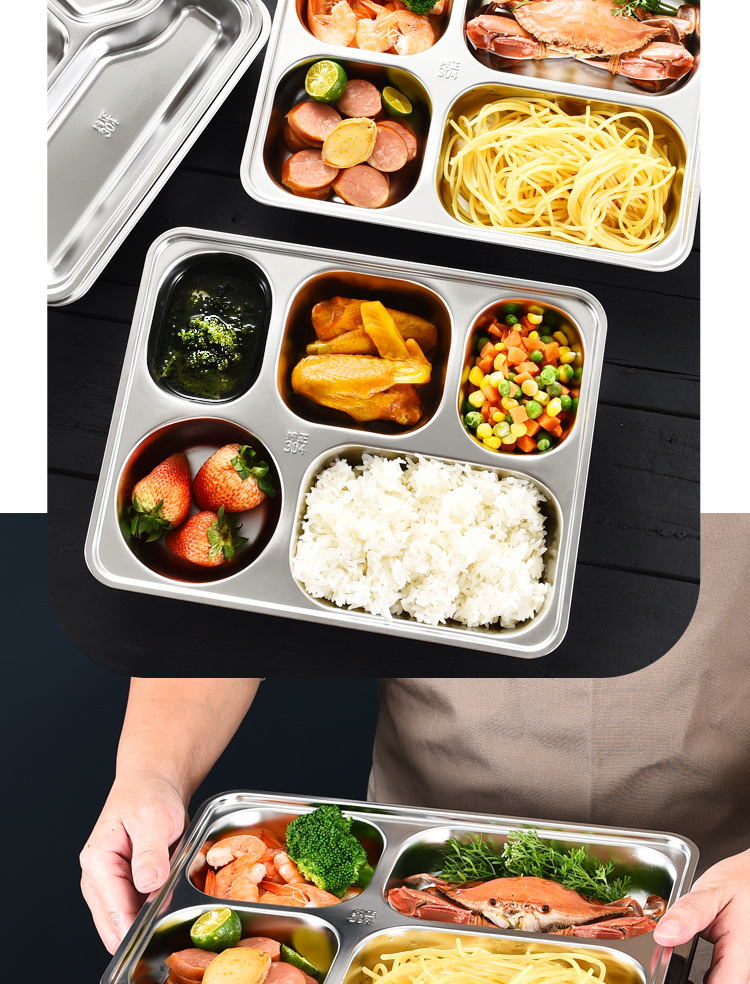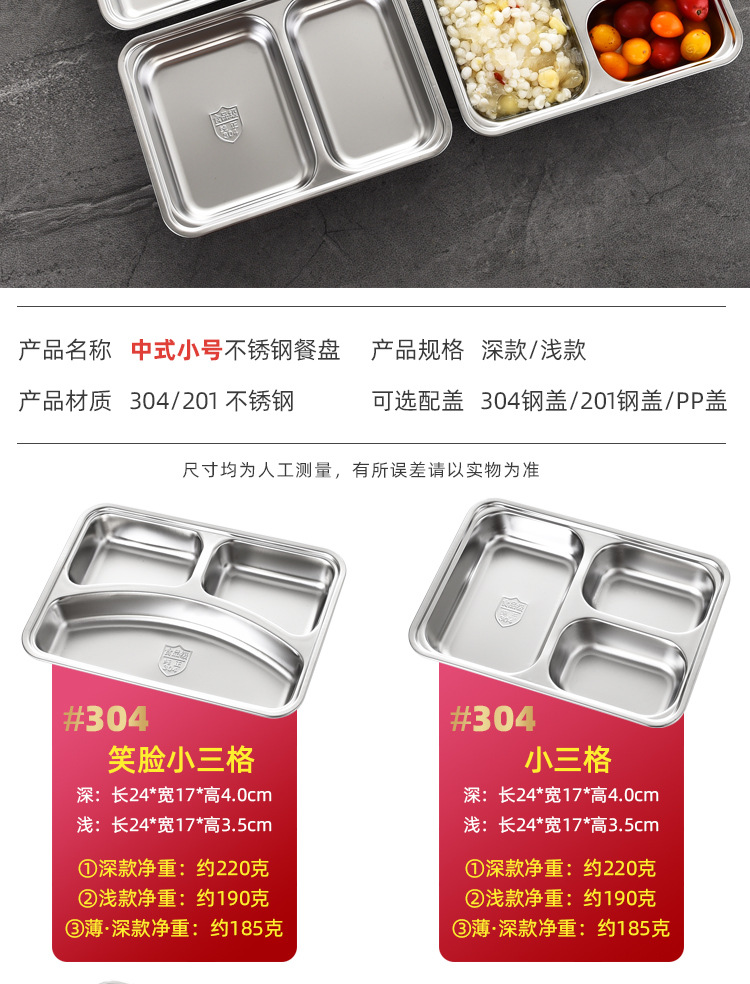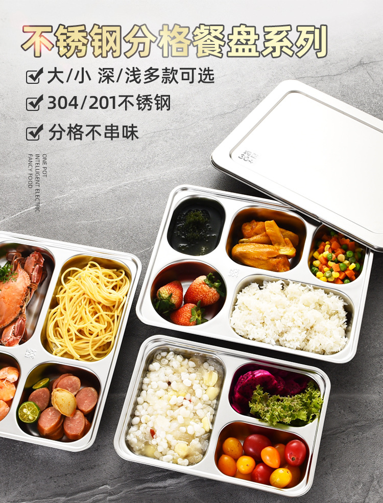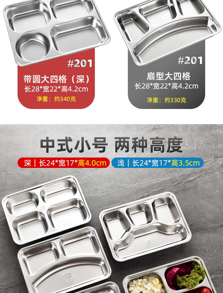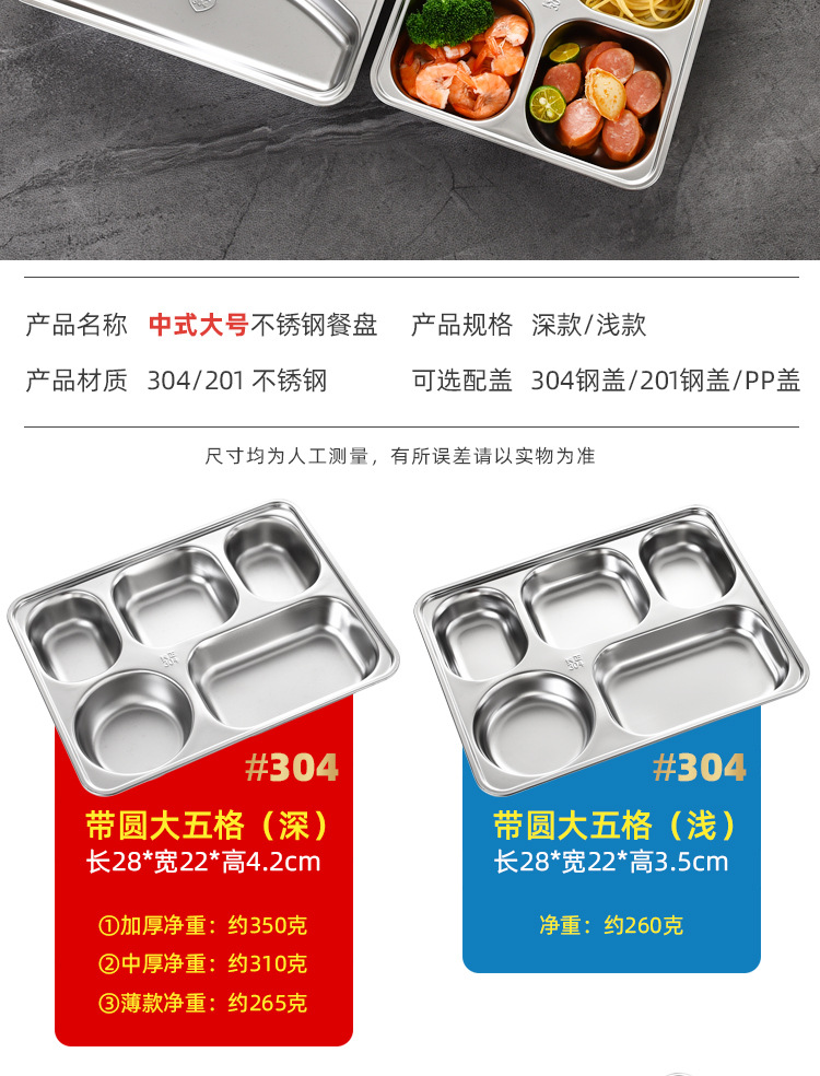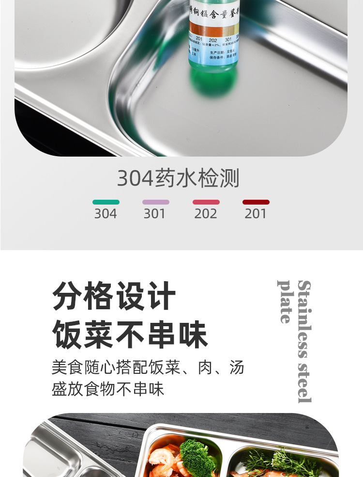 공장 직접 공급 뜨거운 판매 학교 매점 멀티 사이즈 분할 쌀 플레이트 성인 학생 두꺼운 스테인레스 스틸 플레이트스토어 가기