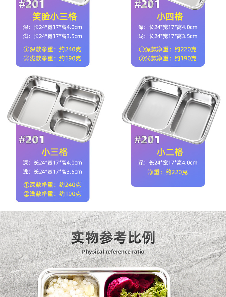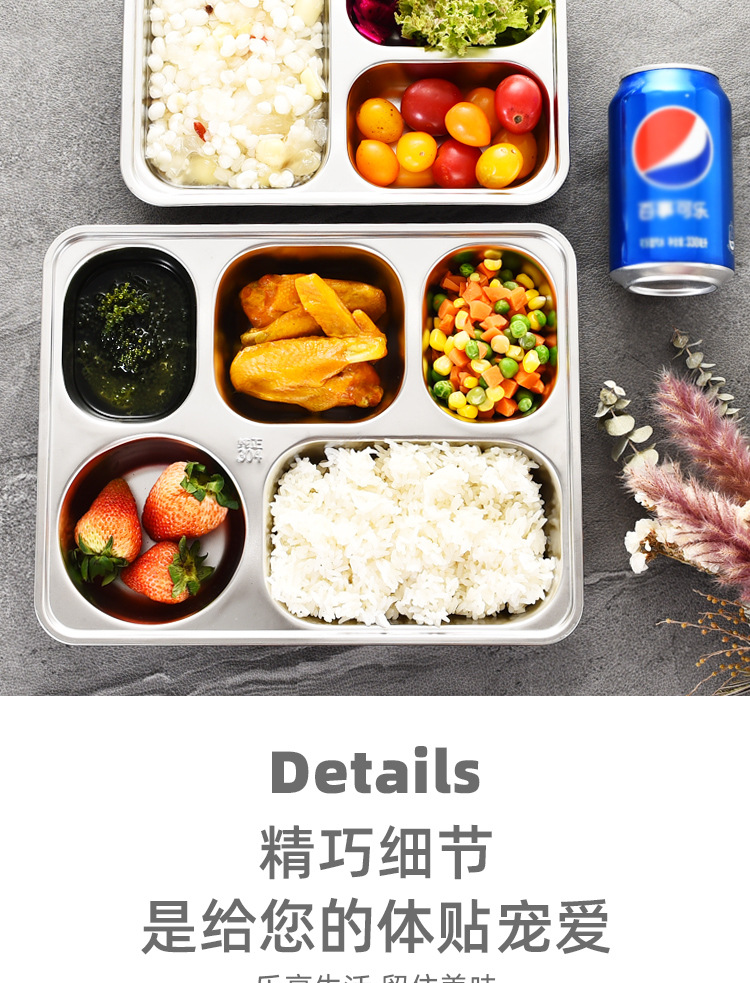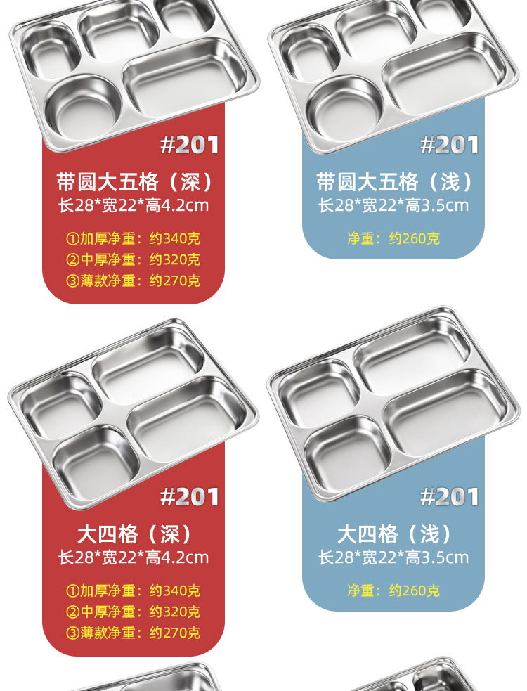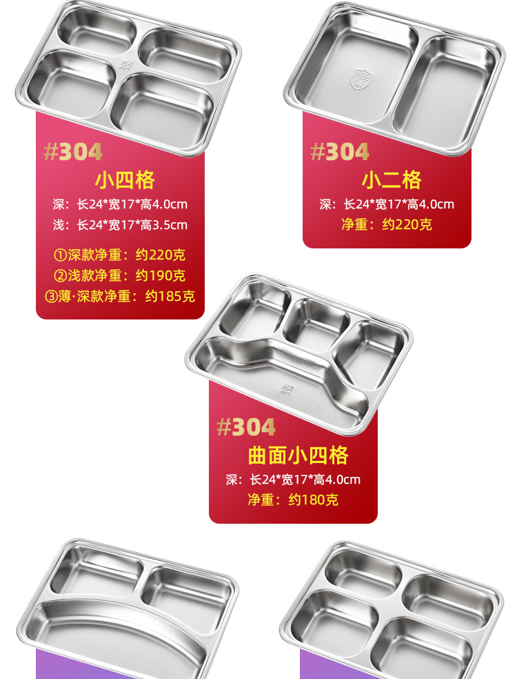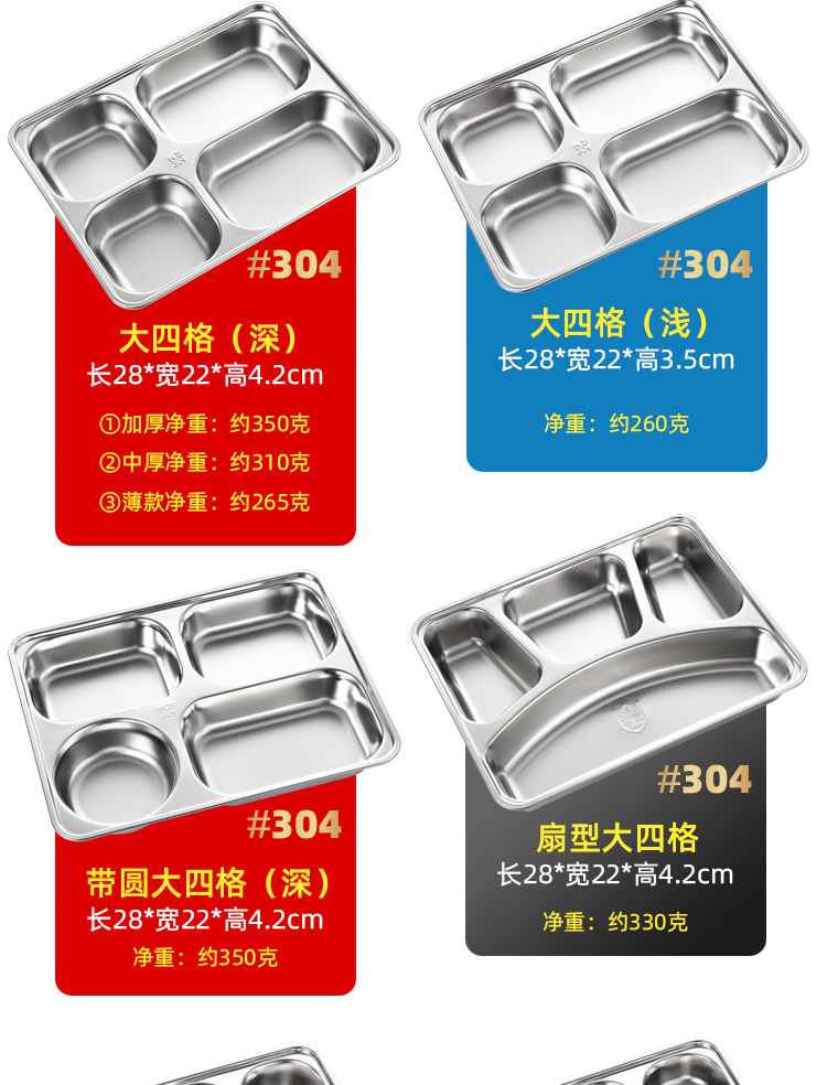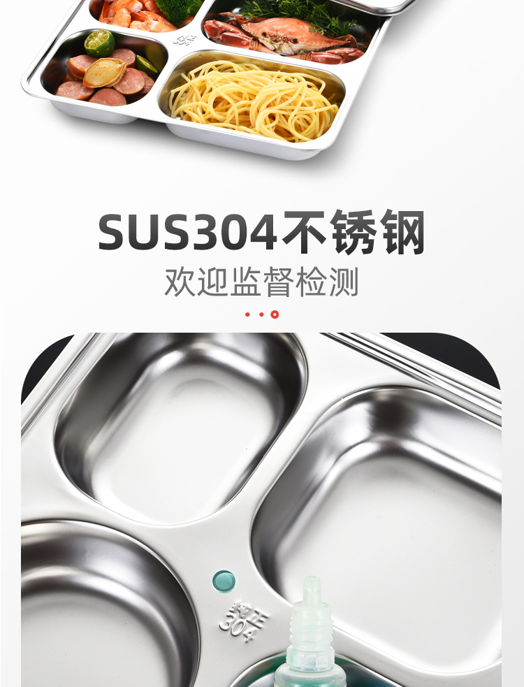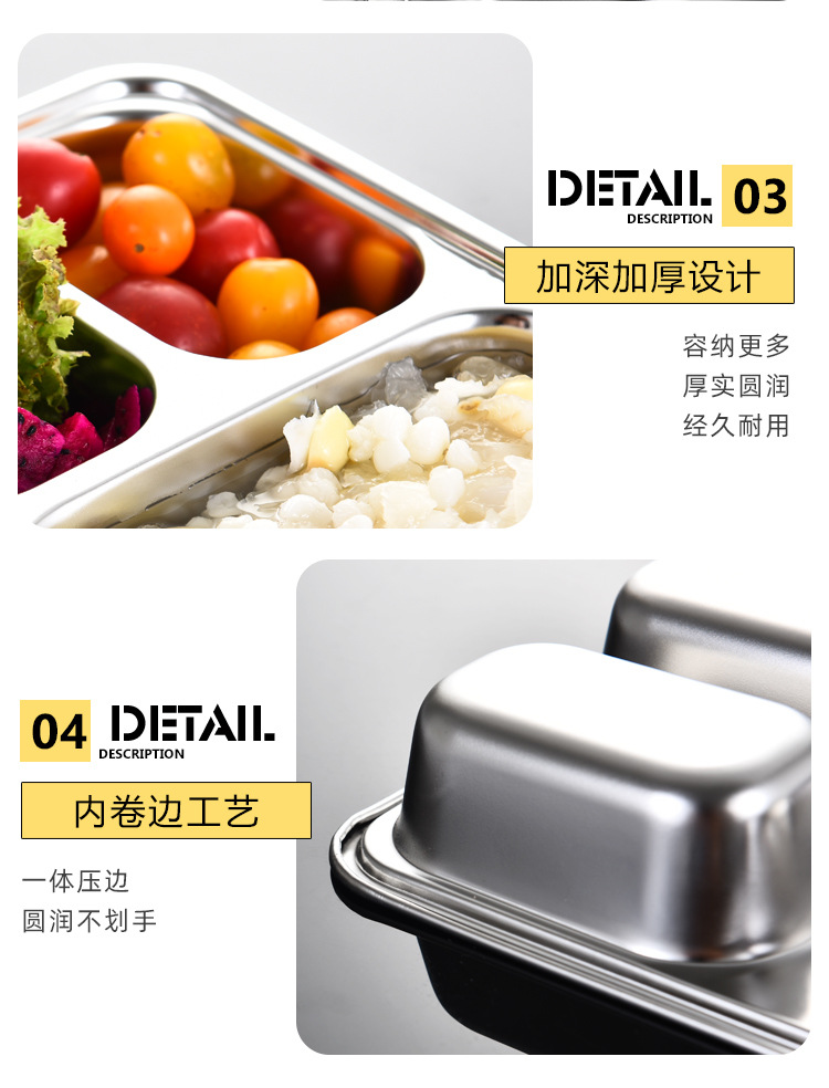 공장 직접 공급 뜨거운 판매 학교 매점 멀티 사이즈 분할 쌀 플레이트 성인 학생 두꺼운 스테인레스 스틸 플레이트스토어 가기