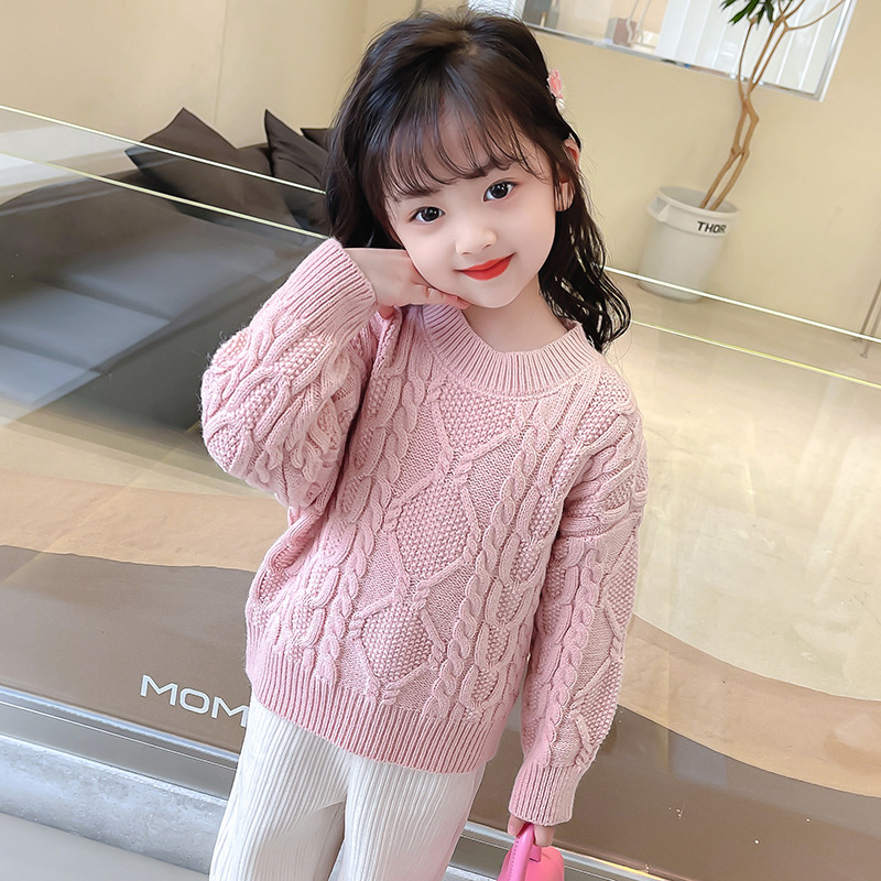 어린이 겨울 거친 트위스트 스웨터 두꺼운 느슨한 게으른 소녀 초등학교 어린이 유치원 겉옷 기본 니트 스웨터