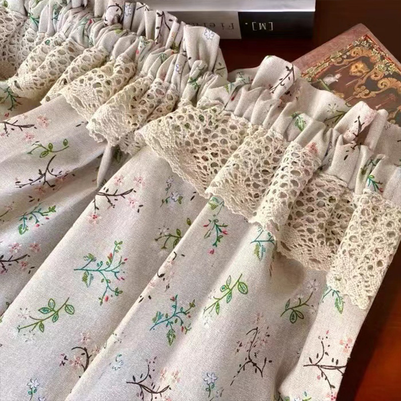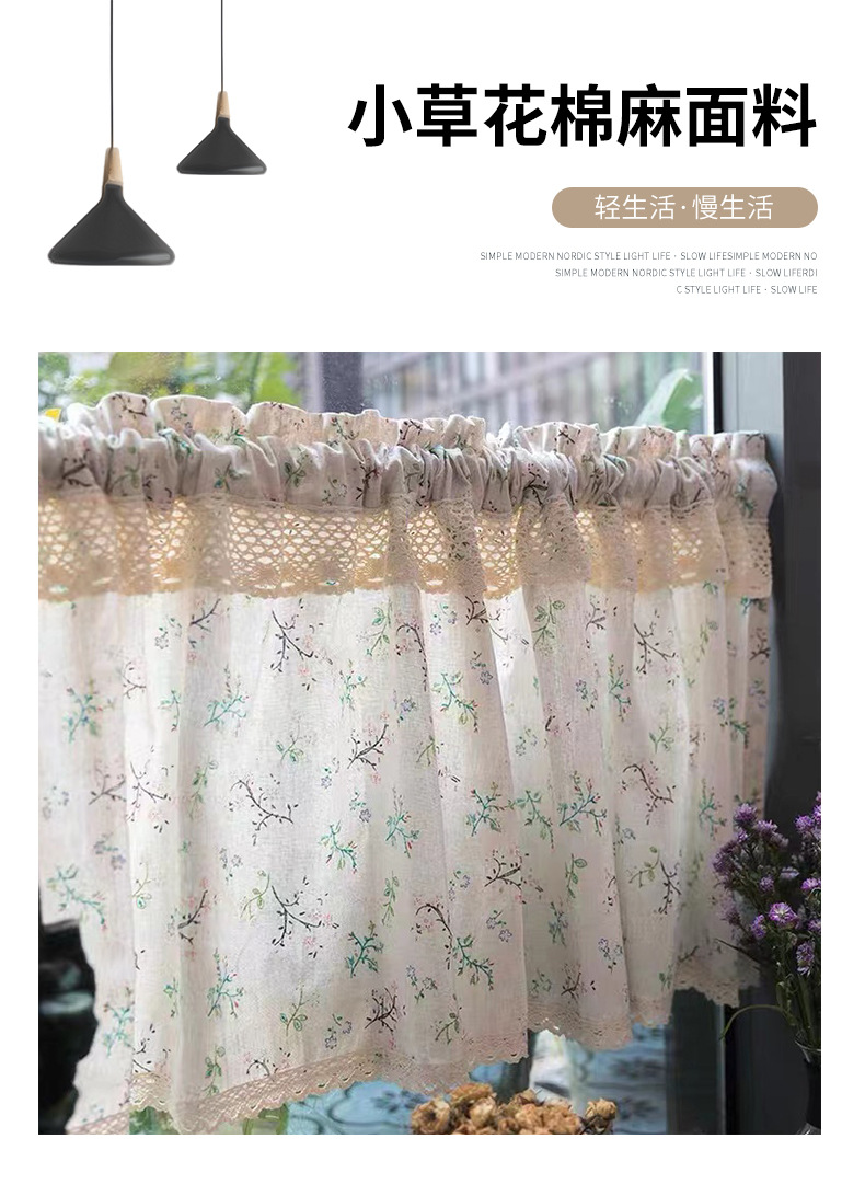 반암막성 잔디꽃 미국식 시골풍 커튼 완제품 반커튼 도어커튼 방진 일체형 도매 주문제작