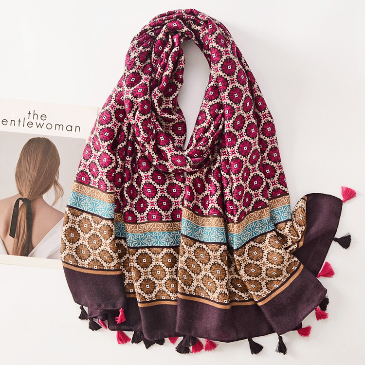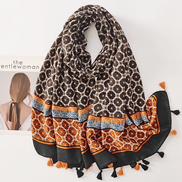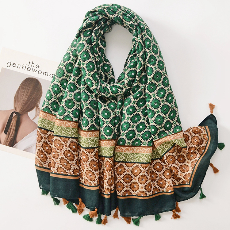 빈티지 패션 모든 일치 면과 린넨 스카프 휠 꽃 긴 술 장식 숄 따뜻한 자외선 차단제 스카프스토어 가기