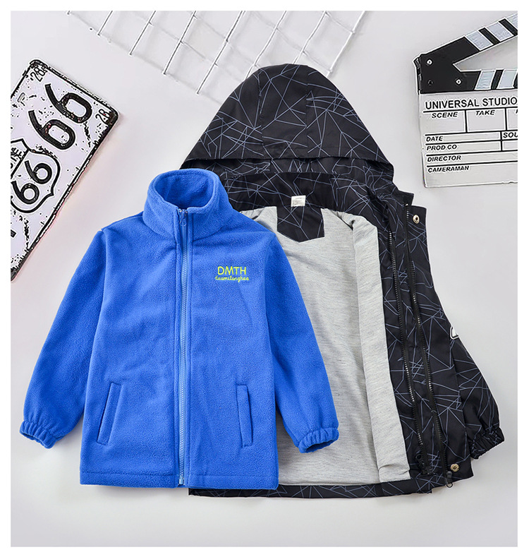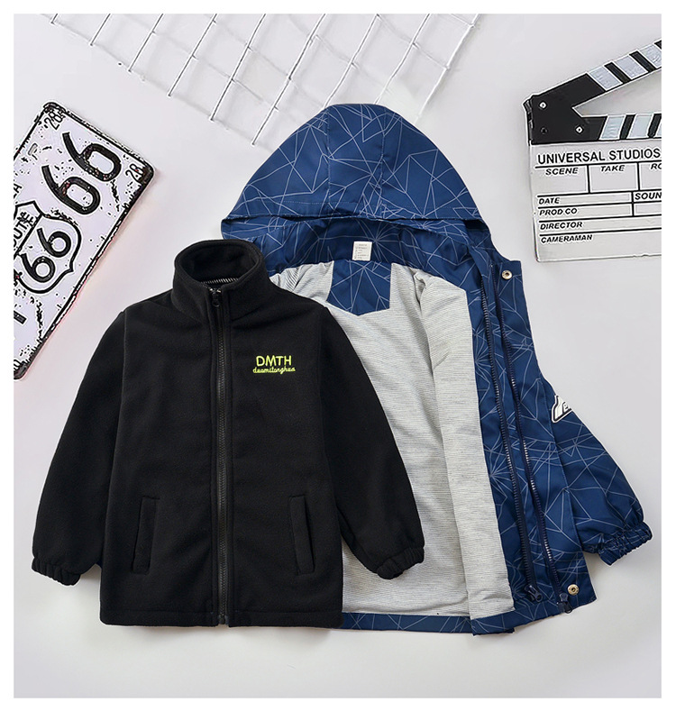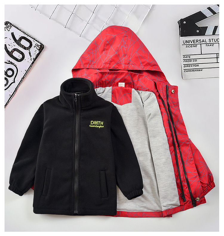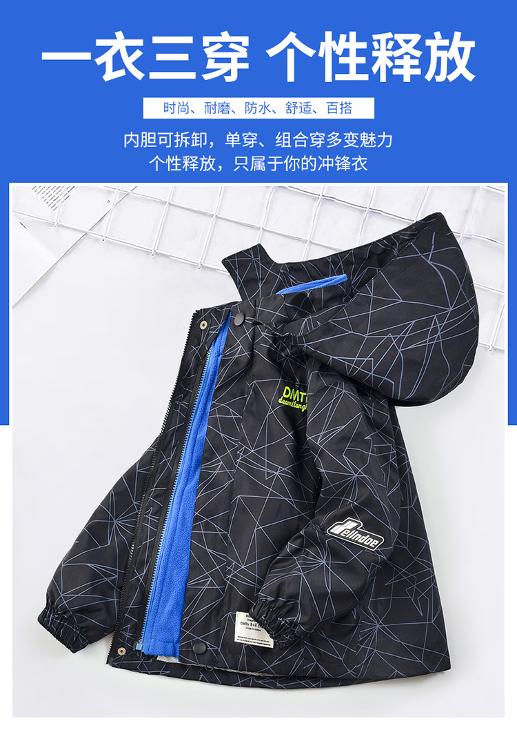 남아용 3-in-1 탈부착 가능 봄가을형 2025년 신상 후드가 달린 중대형 아동용 가을겨울 재킷스토어 가기