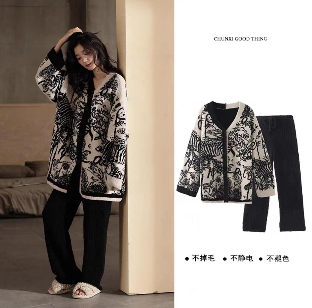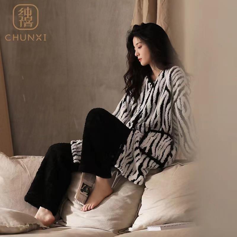 두꺼운 산호 양털 수 놓은 플란넬 세트 따뜻한 남자의 가정 의류 여자의 커플 잠옷 여자의 가을과 겨울 신상품스토어 가기