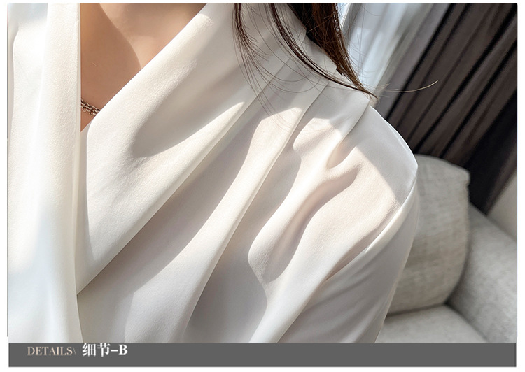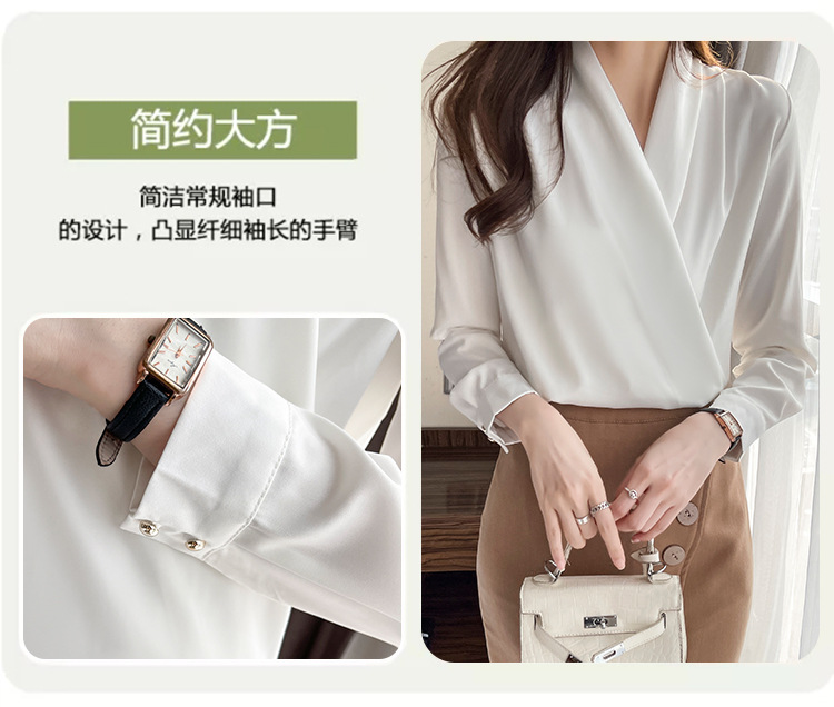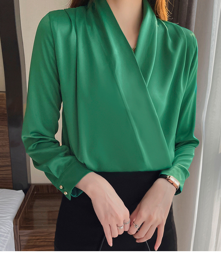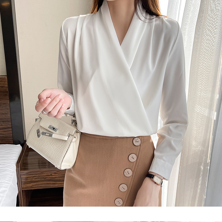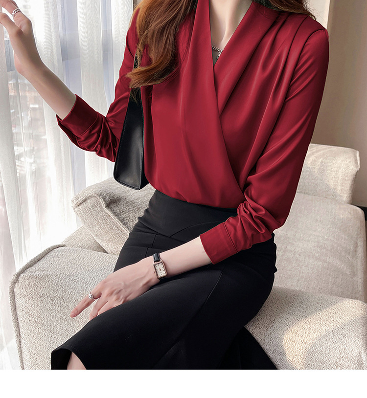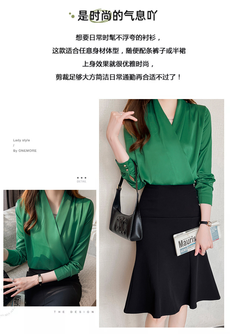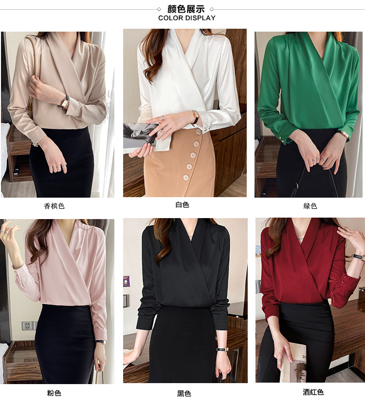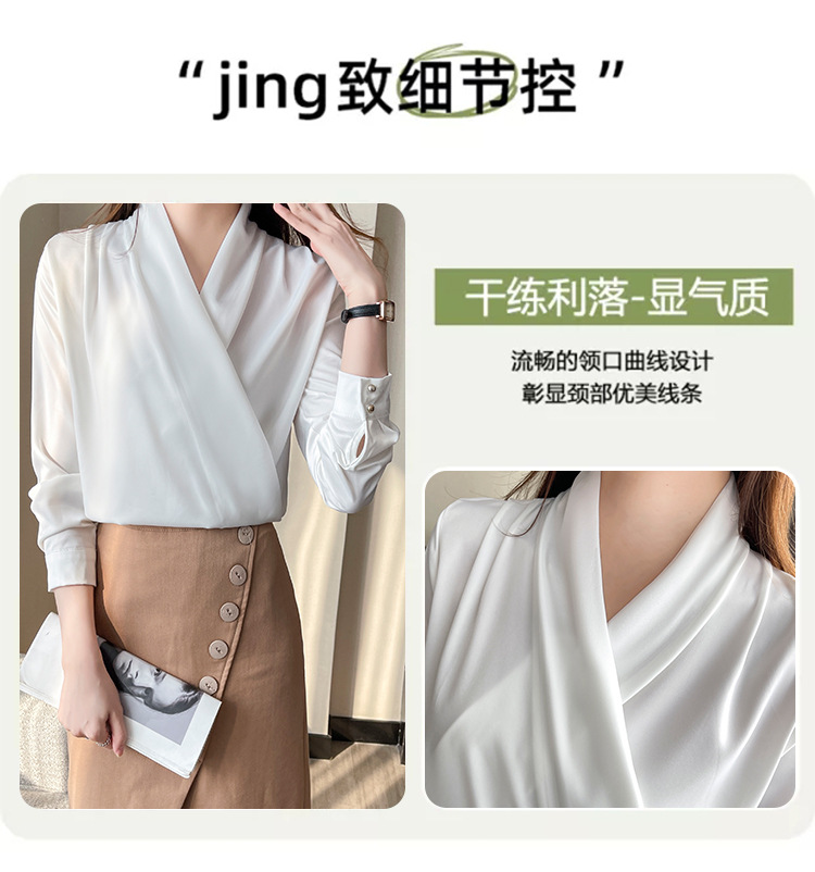 세련된 여성용 셔츠 2025 봄 가을 신상 디자인 감각 있는 크로스 브이넥 긴팔 다용도 새틴 탑스토어 가기