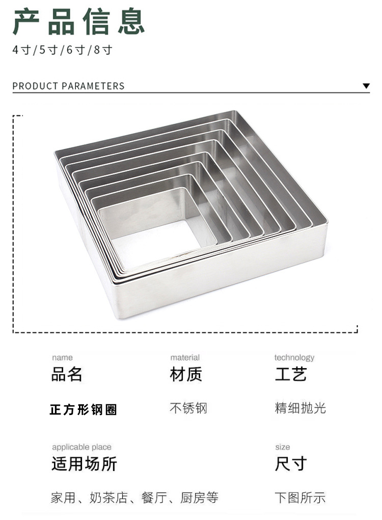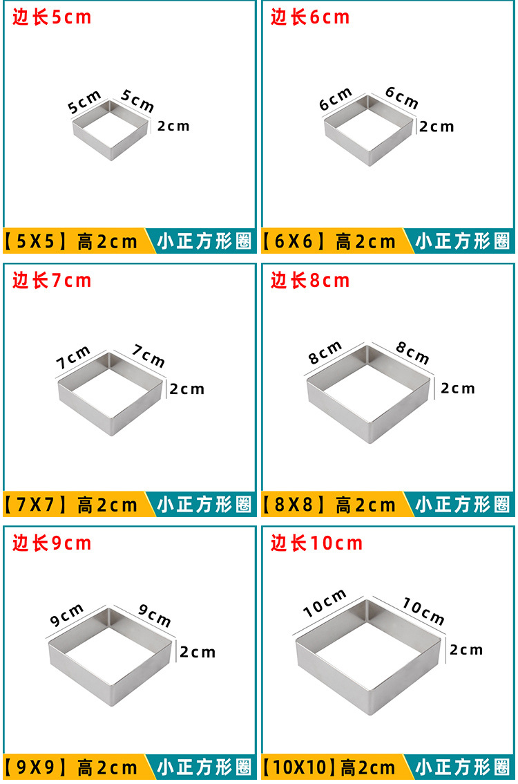 전기 케이크 팬 스몰 사이즈 사각형 스테인레스 무스 원형 튀긴 요구르트 타르트 원형 팬케이크 원형 떡 베이킹 금형 케이크스토어 가기