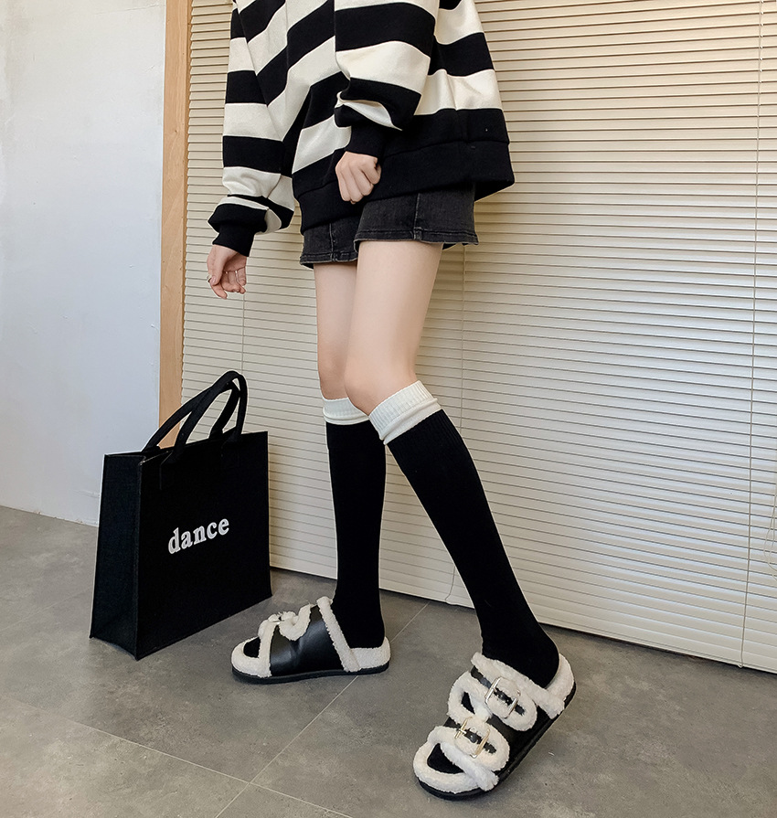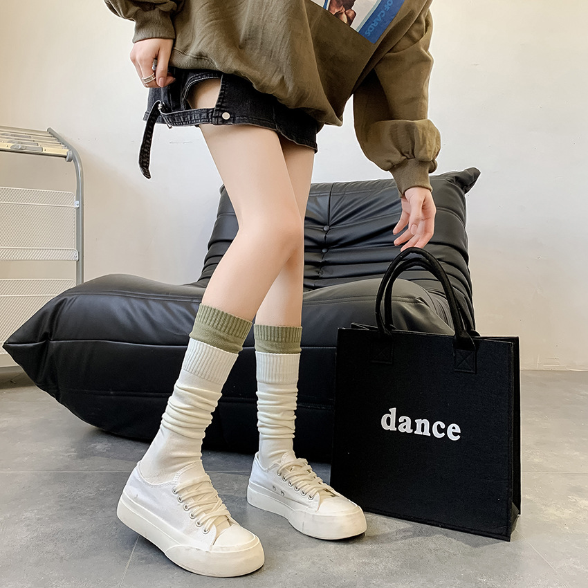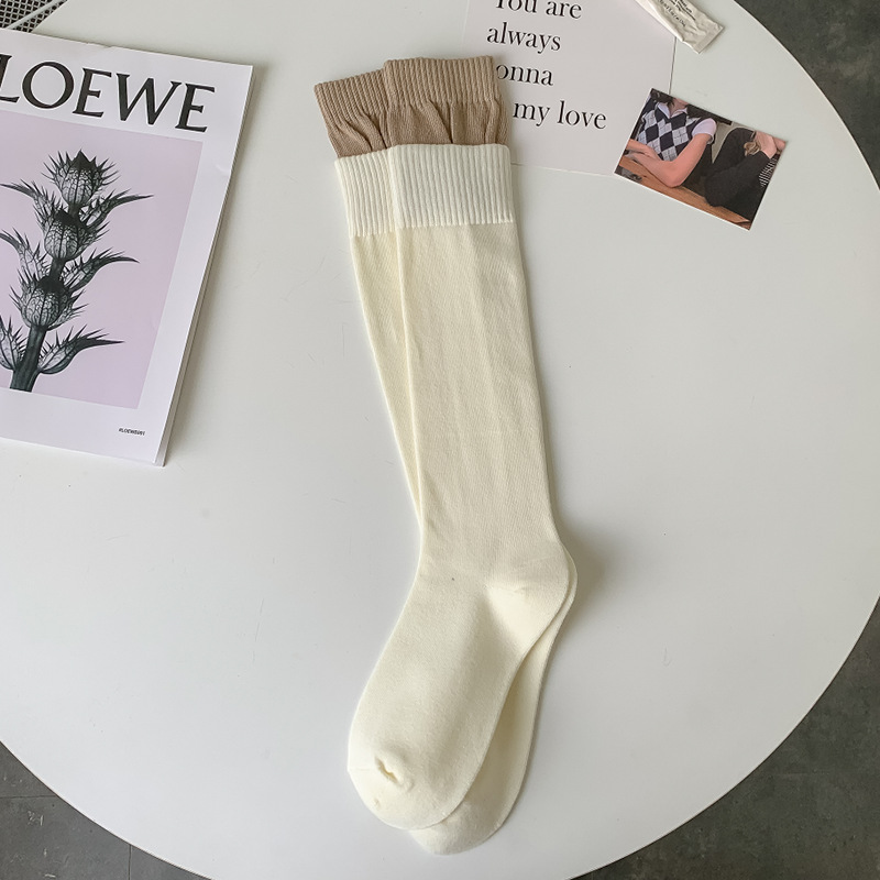 더블 레이어 Luokou 컬러 매칭 송아지 양말 여성 온라인 인기 조수 양말 중간 길이 스타킹 유행 단색 무릎 높이 양말 더미 양말스토어 가기