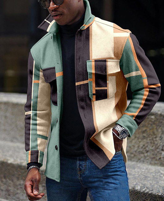 2022 가을과 겨울 남성용 다이아몬드 3D 디지털 인쇄 느슨한 재킷 코트 전체 인쇄 3D 버튼 카디건