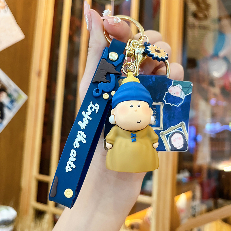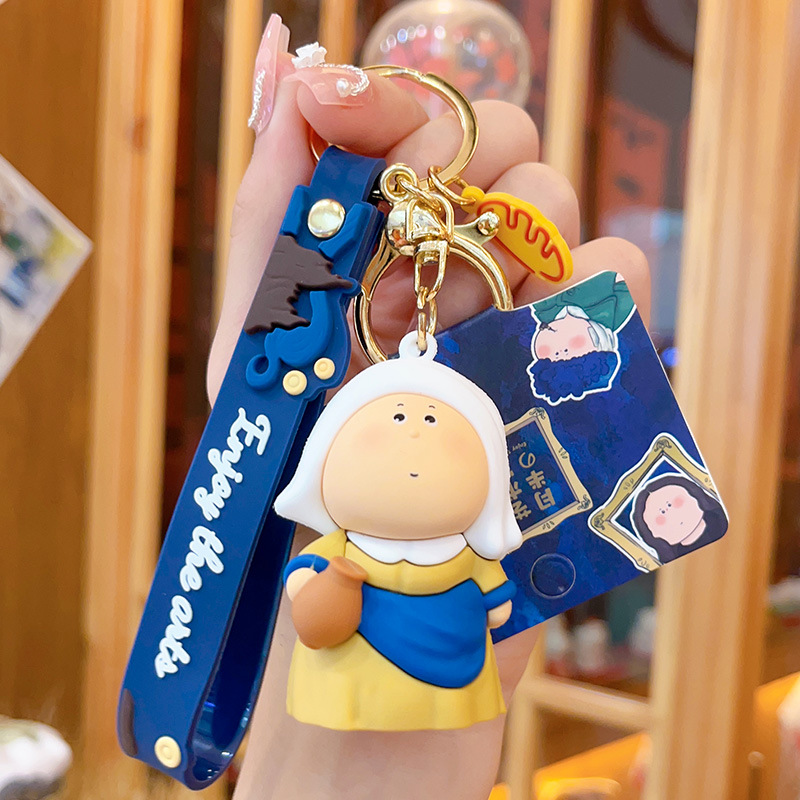 정품 문 아티스트 열쇠 고리 진주 귀걸이 소녀 모나 사샤 만화 열쇠 고리 가방 펜던트