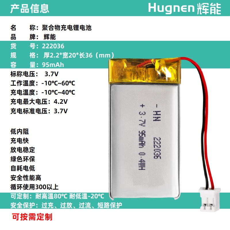 • 标称电压:  3.7V,可定制7.4V、11.1V