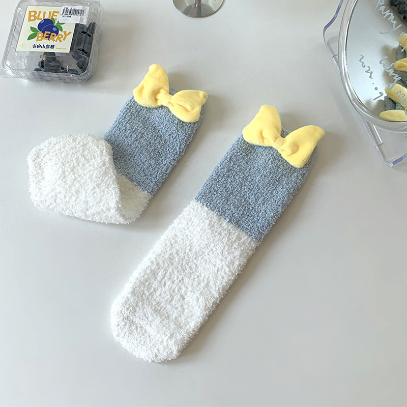 겨울 기모 3 차원 활 산호 양털 양말 여자의 바닥 양말 귀여운 공주 가정 수면 달 양말 겨울