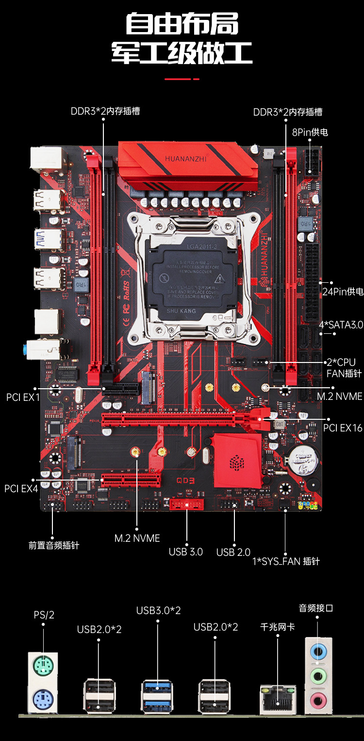 남 중국 금 X99-QD3 마더 보드 컴퓨터 데스크탑 제온 CPU 마더 보드 e5 2666 2673 2678 v3