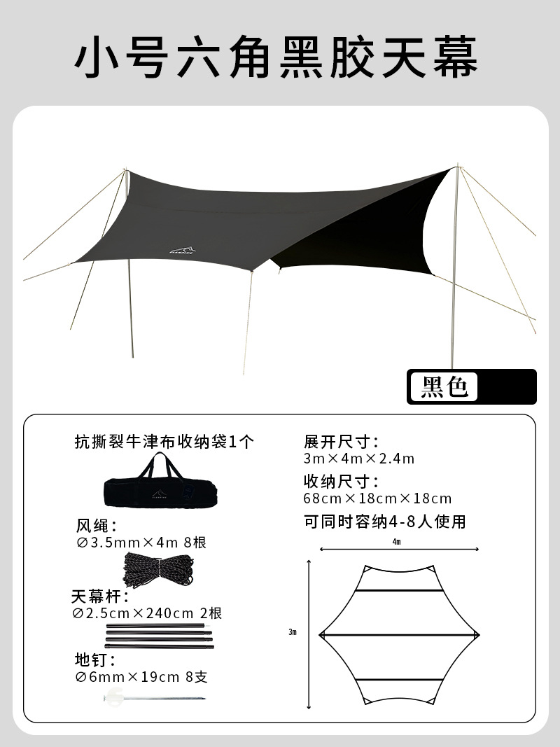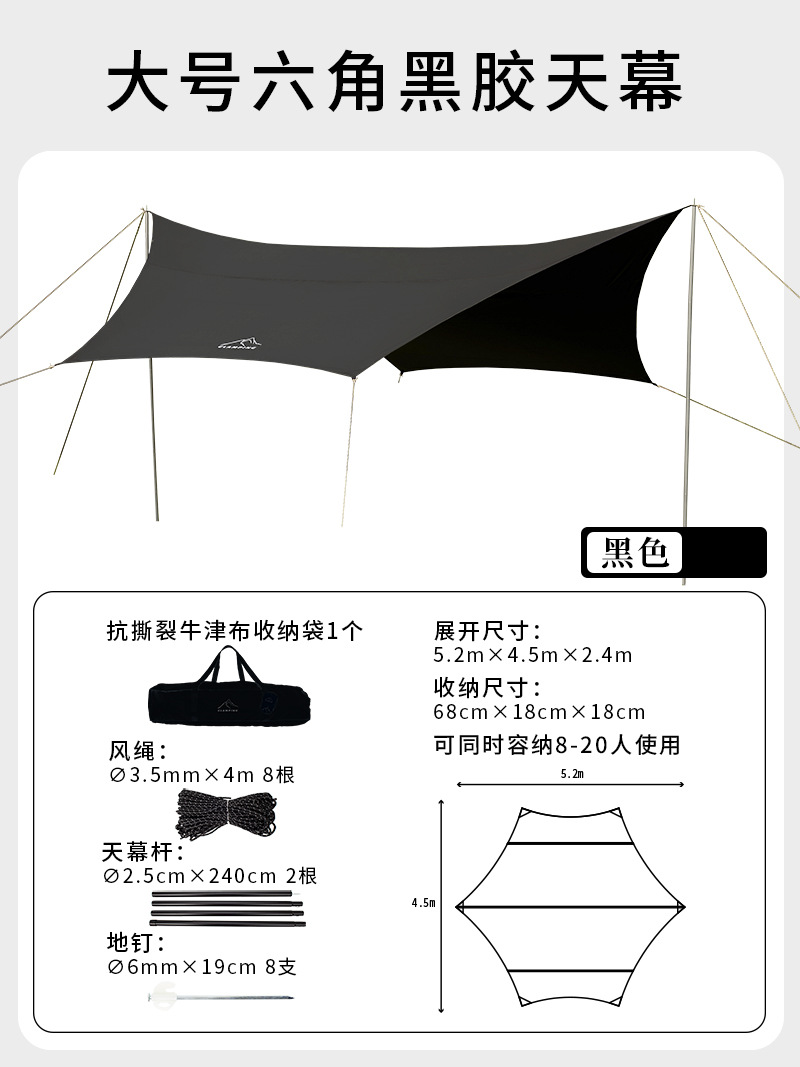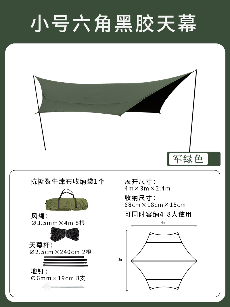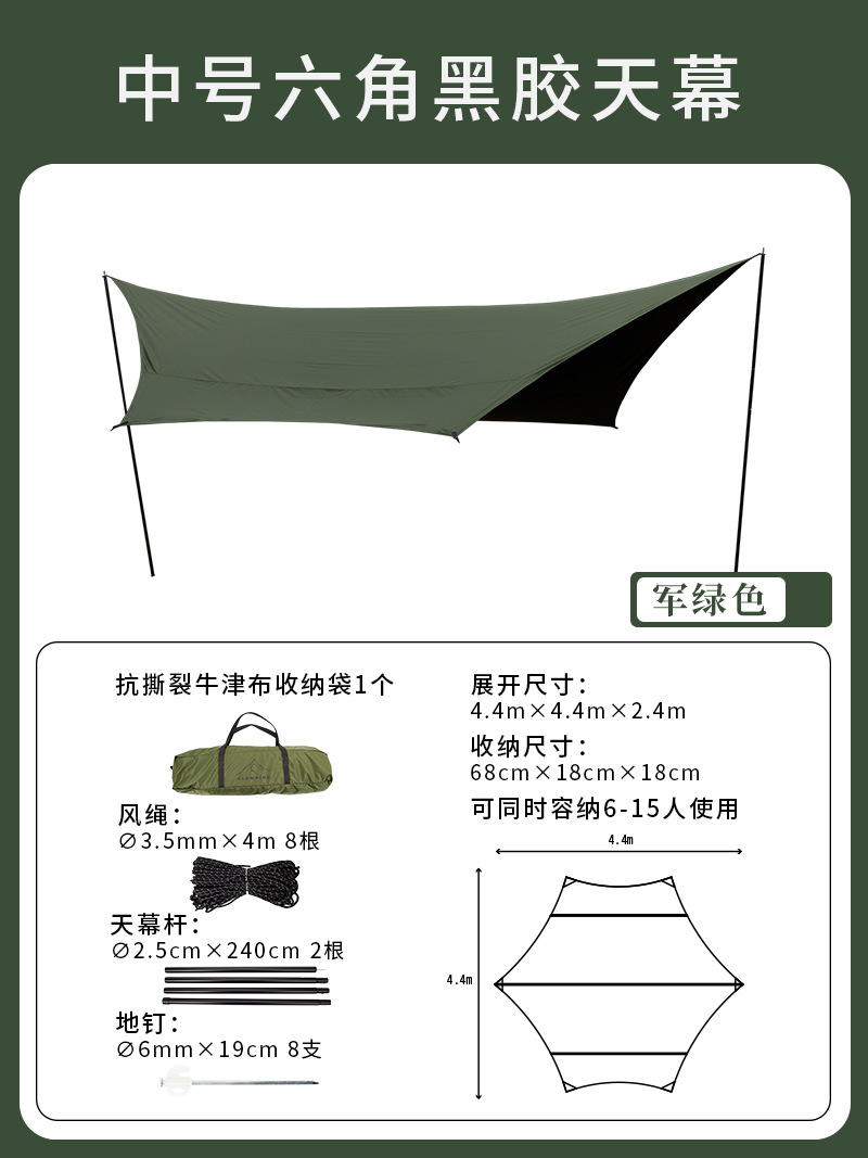 • 다크 그린 육각형 블랙 고무 캐노피 매체 [19 ㎡ 한 가족이 여행하기에 적합]]