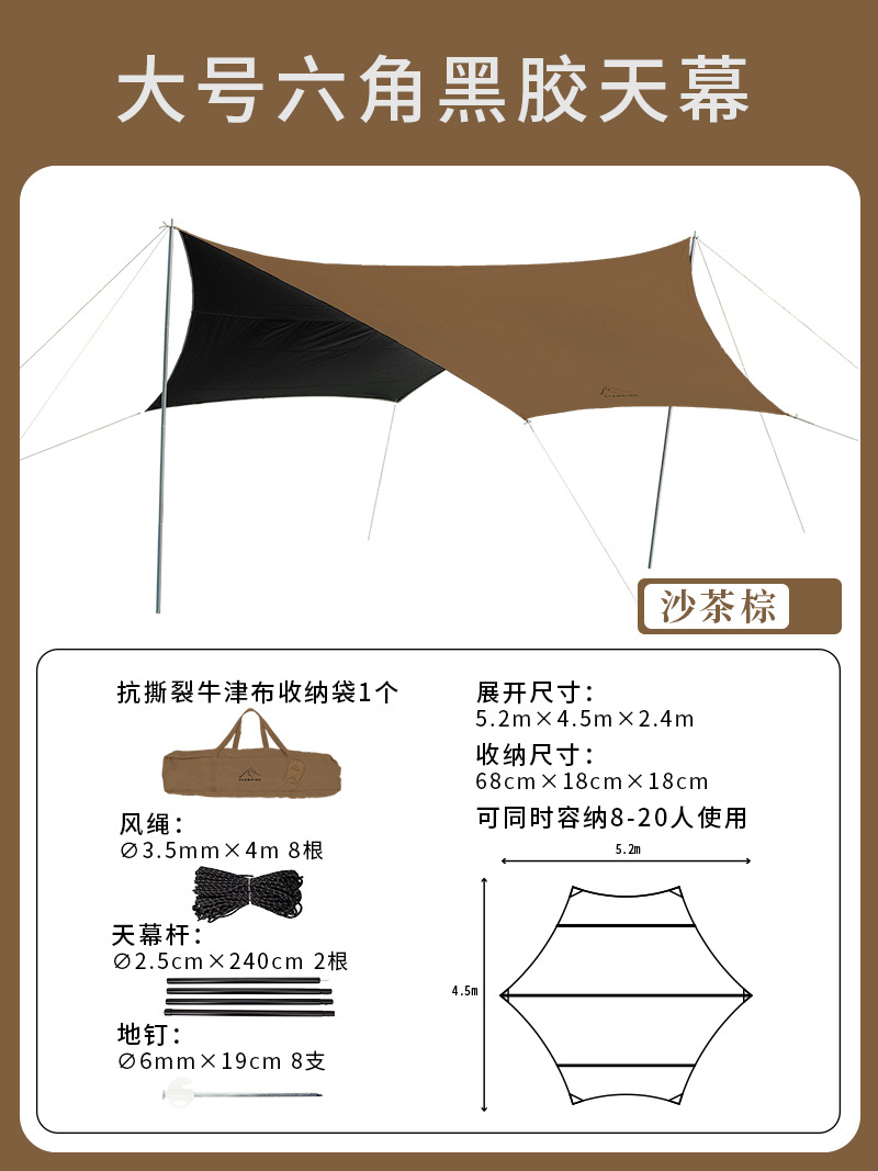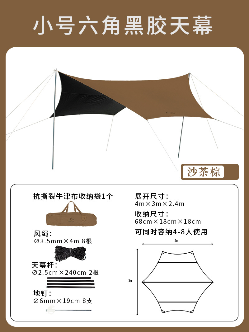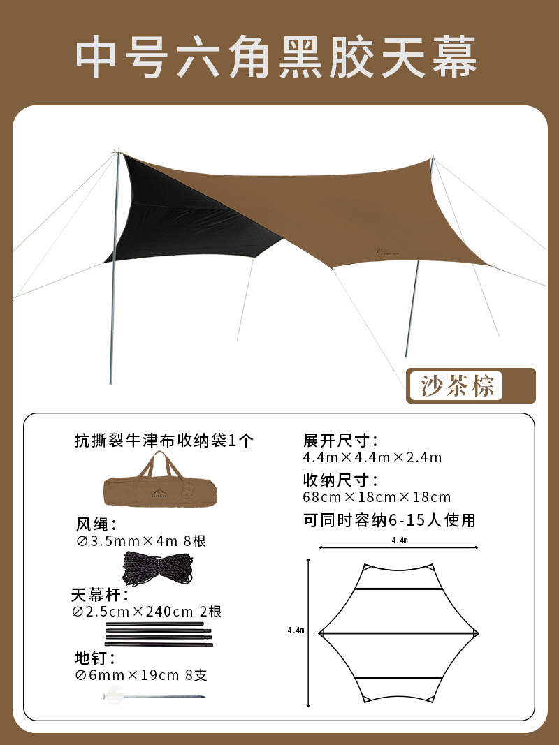 • 육각형 블랙 고무 캐노피 중형 다크 브라운 샌드 티 [19 ㎡ 한 가족이 여행하기에 적합]]