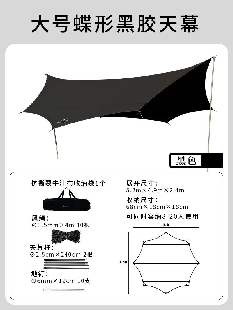 나비 비닐 캐노피 캠핑 텐트 야외 검게 캠핑 자외선 차단제 비닐 코팅 방수 휴대용 장비 대형스토어 가기