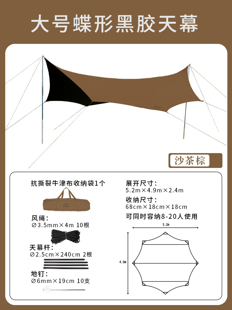 나비 비닐 캐노피 캠핑 텐트 야외 검게 캠핑 자외선 차단제 비닐 코팅 방수 휴대용 장비 대형