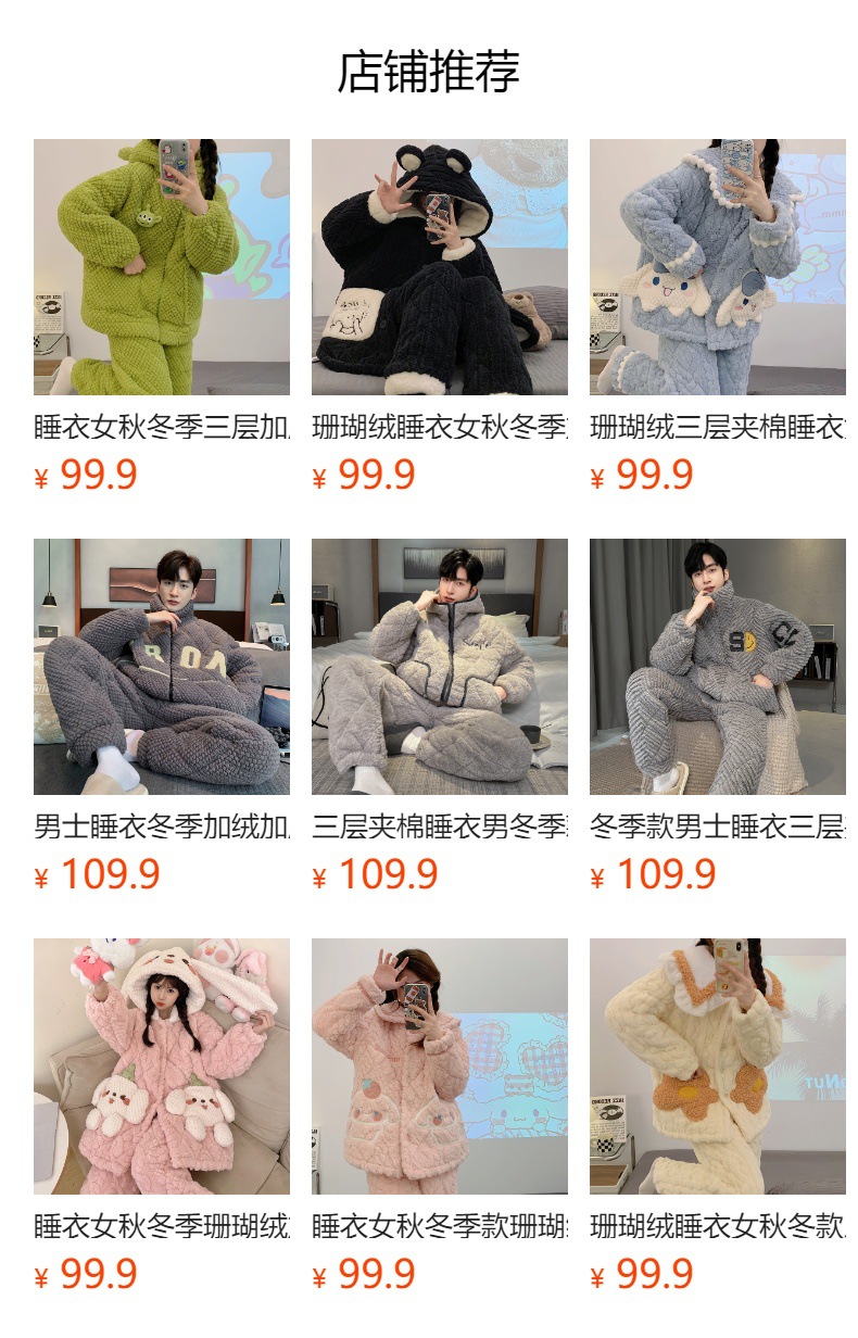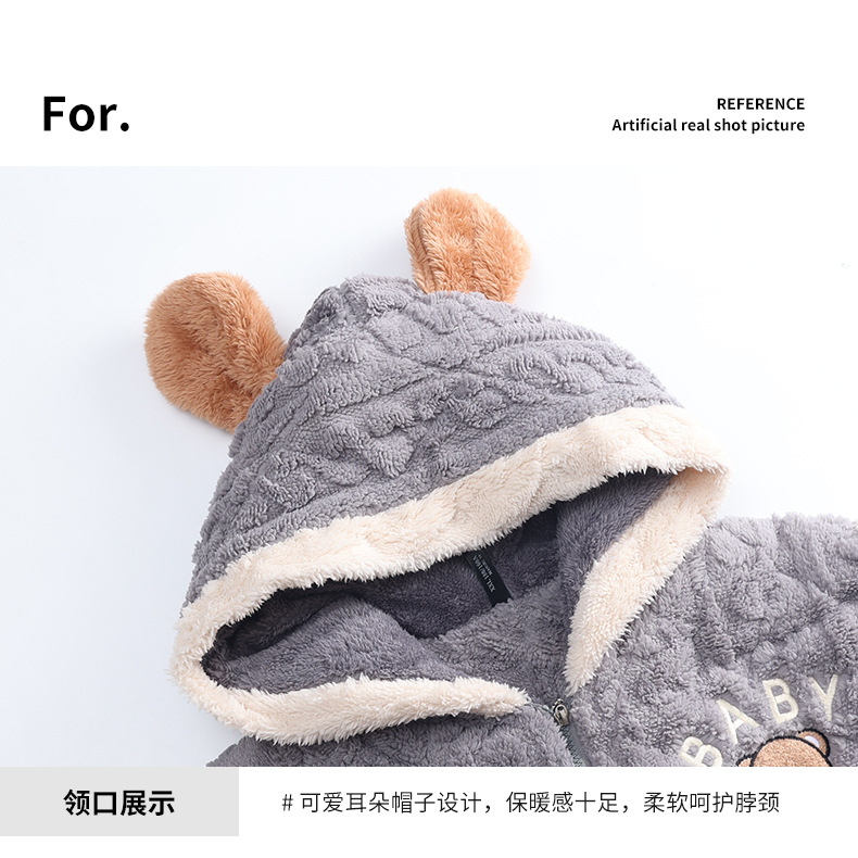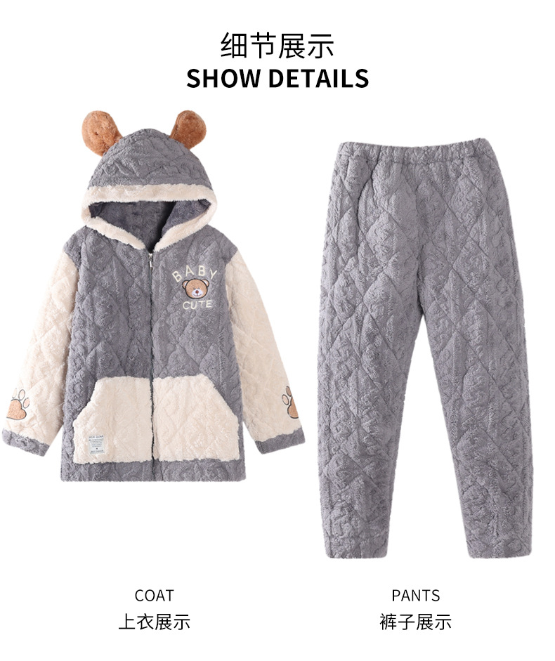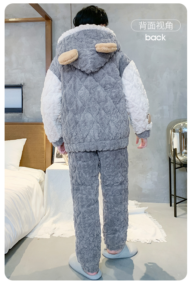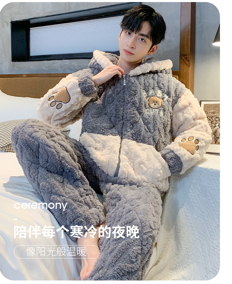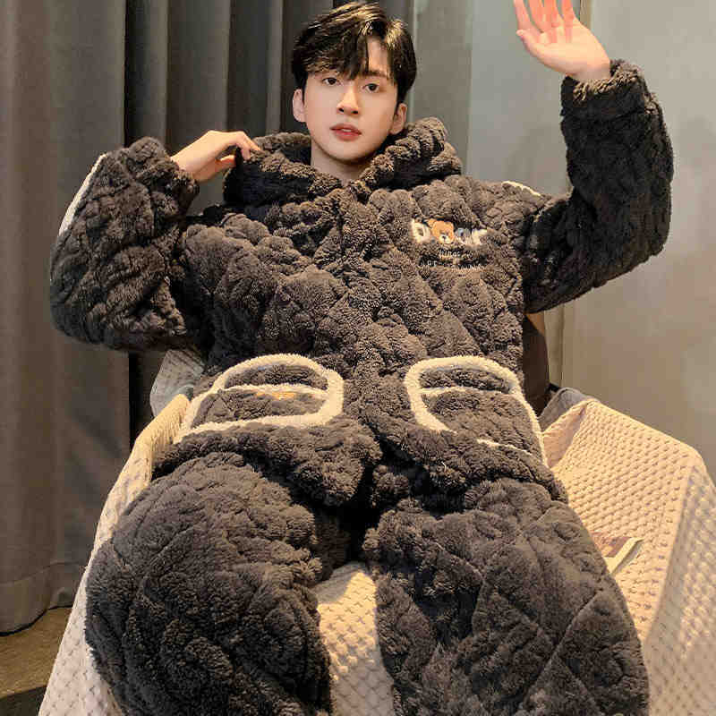 겨울 두꺼운 벨벳 3겹 누비 따뜻한 산호 벨벳 가을 겨울 남성용 잠옷 남성용 지퍼 홈웨어 세트스토어 가기