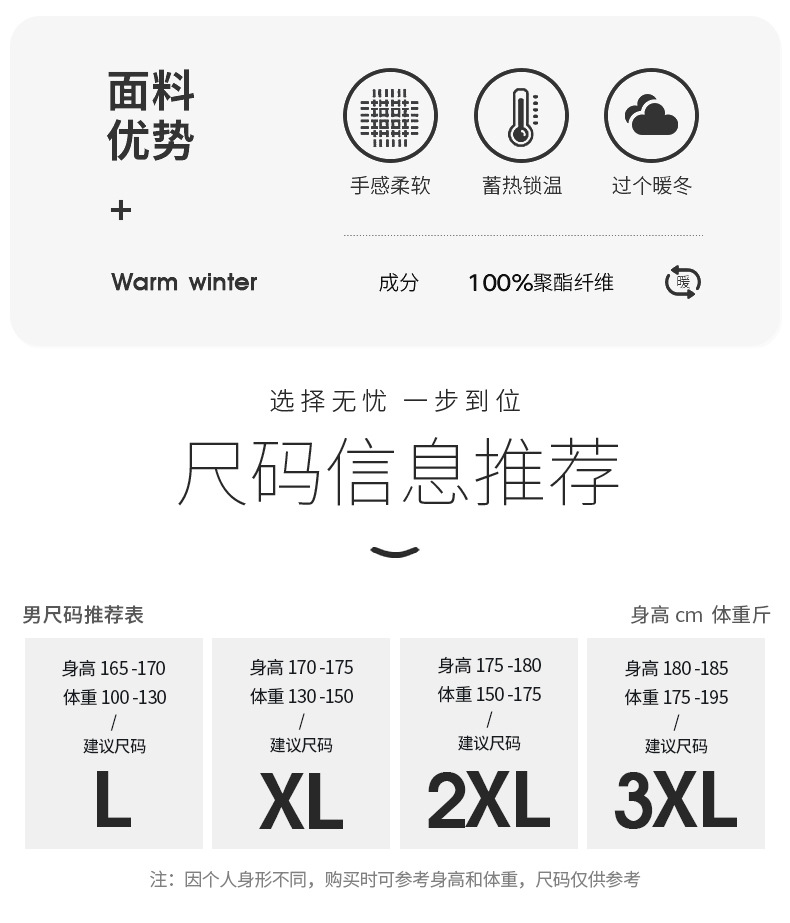 • 남아용 XL 사이즈 [권장 키 170-175cm, 몸무게 65-75kg ] [따뜻하고 편안하며 부드러움]