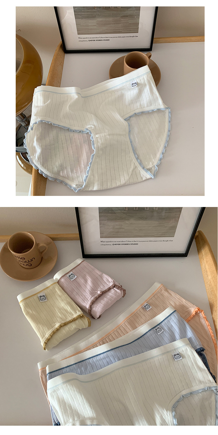 일본식 모란디 심플 퓨어 코튼 가랑이 편안한 속옷 여성용 미드 웨이스트 이어 에지 학생용 팬티