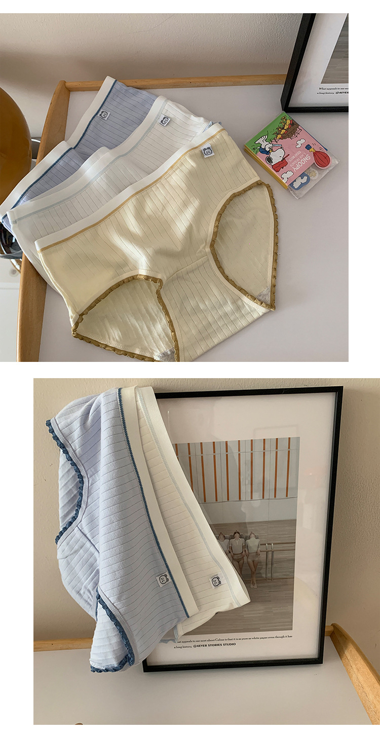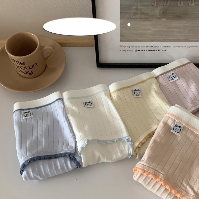 일본식 모란디 심플 퓨어 코튼 가랑이 편안한 속옷 여성용 미드 웨이스트 이어 에지 학생용 팬티스토어 가기
