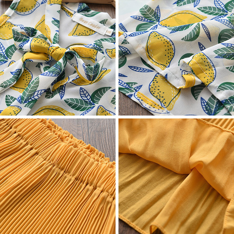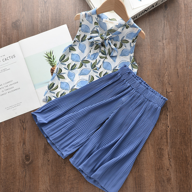 여름 6250 한국식 멋진 통기성 쉬폰 나비 민소매 셔츠 와이드 레그 팬츠 투피스 세트 어린이 세트 바지