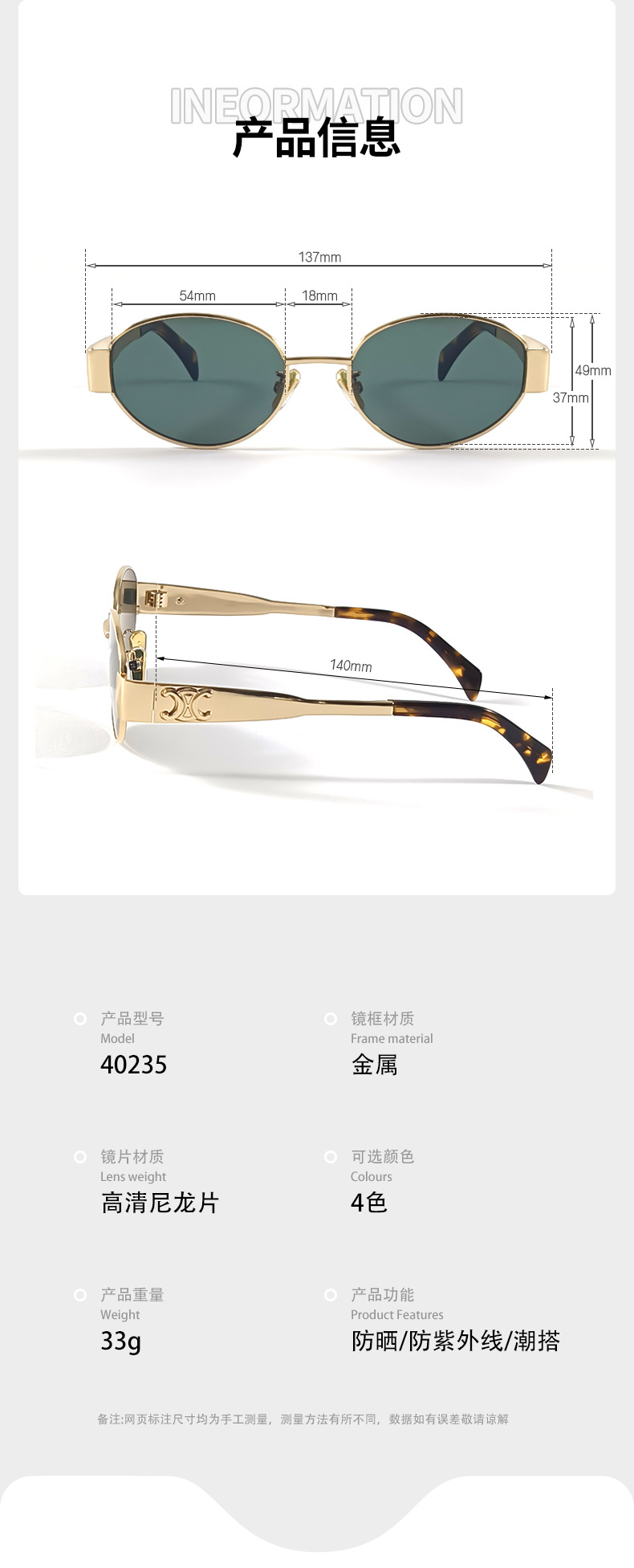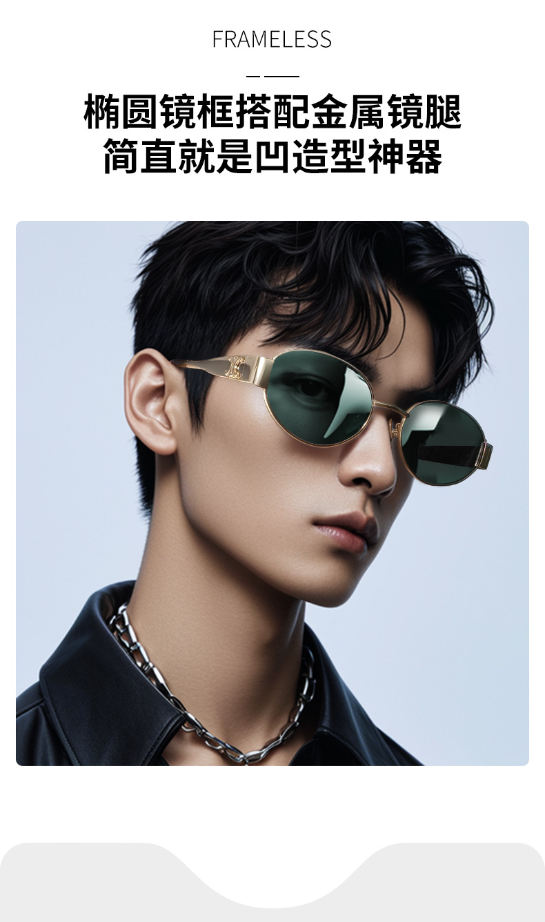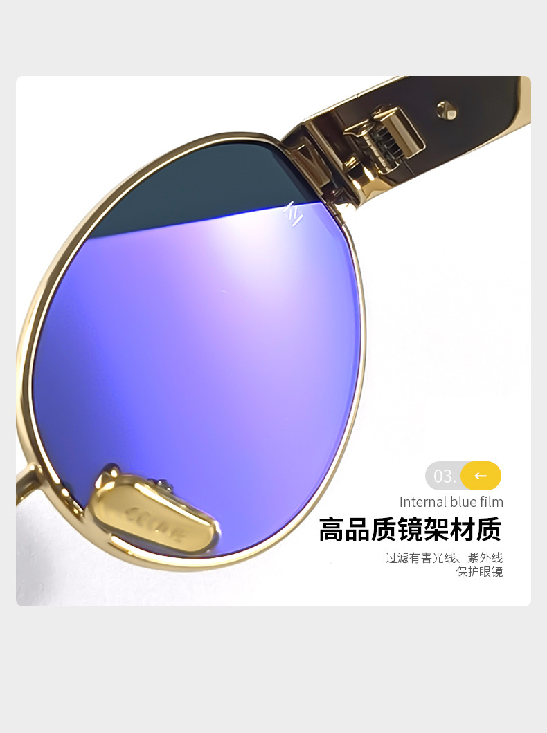 하이 버전 개선문 선글라스 여성 인터넷 연예인 같은 스타일 금속 작은 프레임 복고풍 독특한 선글라스 40235 타원형스토어 가기